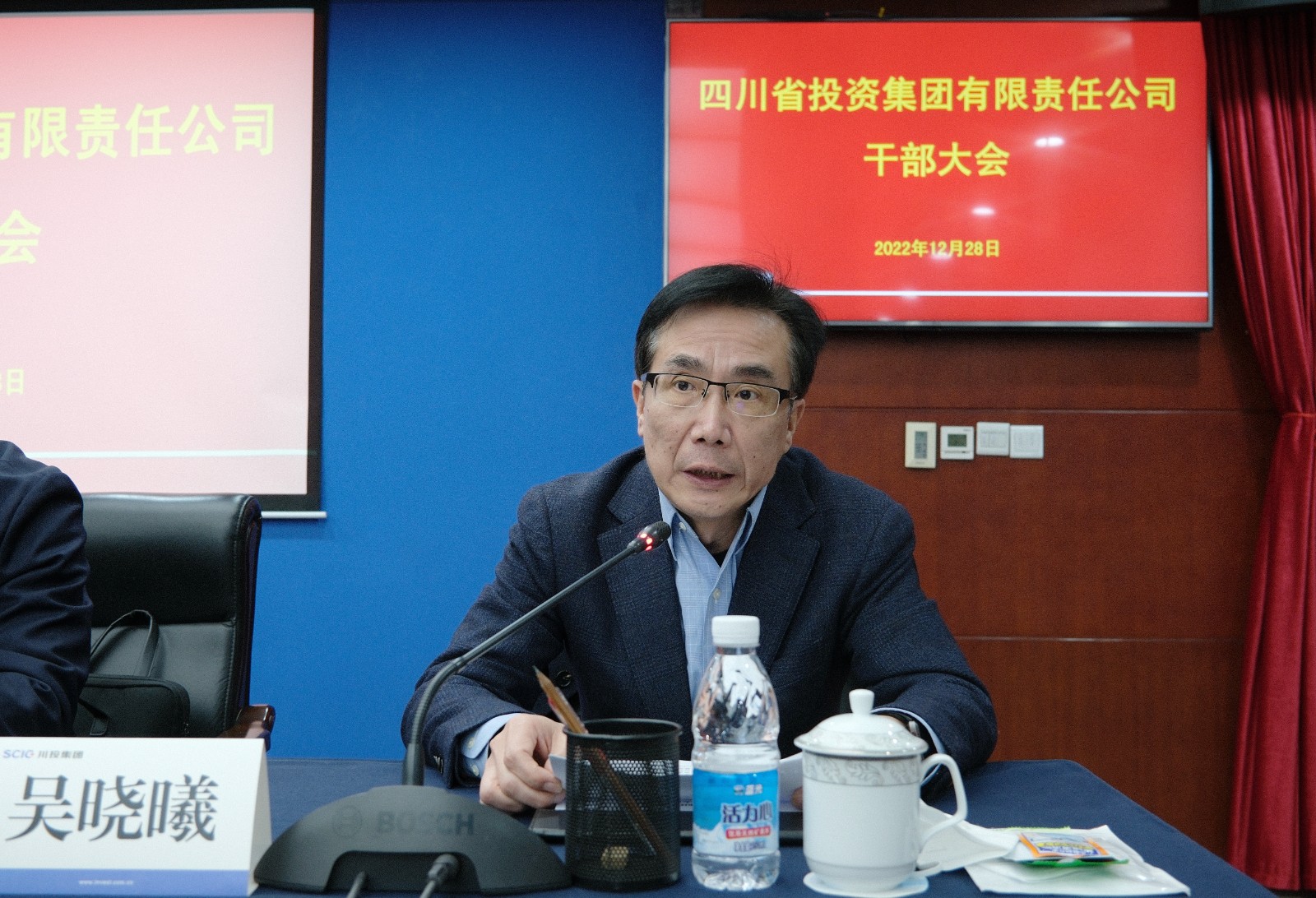 省政府辦公廳、省委組織部、省國資委相關(guān)處室的負責同志,川投集團公司領(lǐng)導班子成員、總經(jīng)理助理、各部門負責人,在蓉全資、控股、重要參股公司主要負責人在主會場參加會議。集團公司各部門中層副職、專職外派董監(jiān)事、在蓉所屬公司其他班子成員、非在蓉所屬公司全體班子成員在各視頻會議室參會。