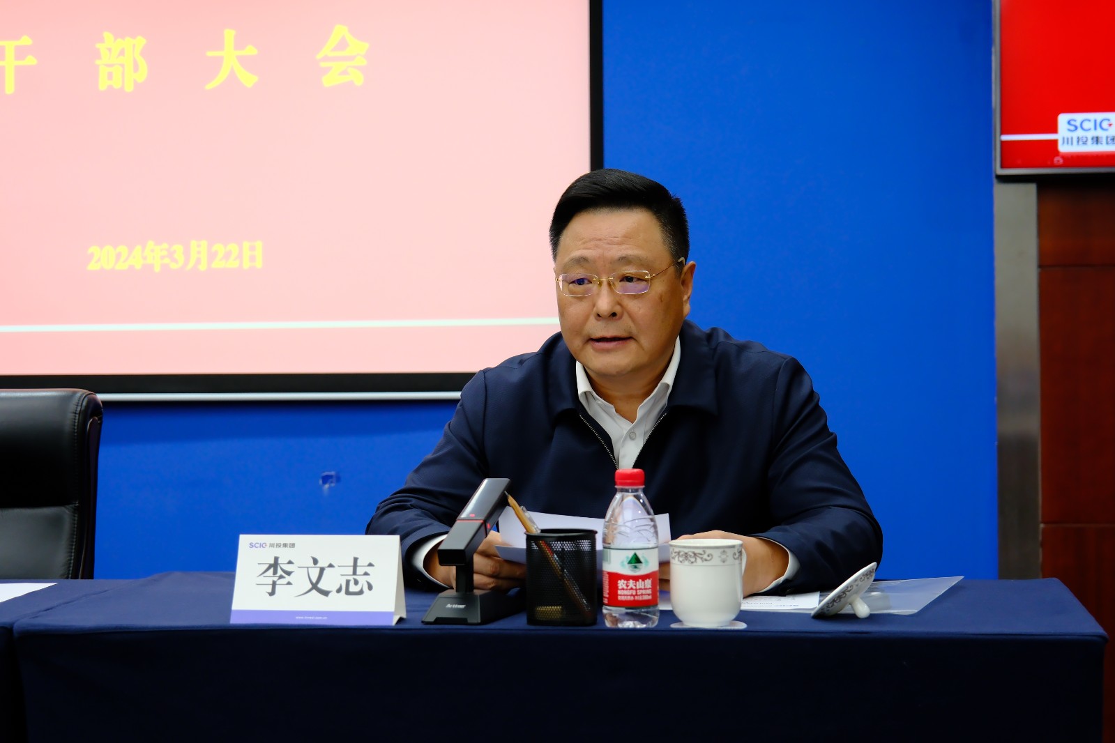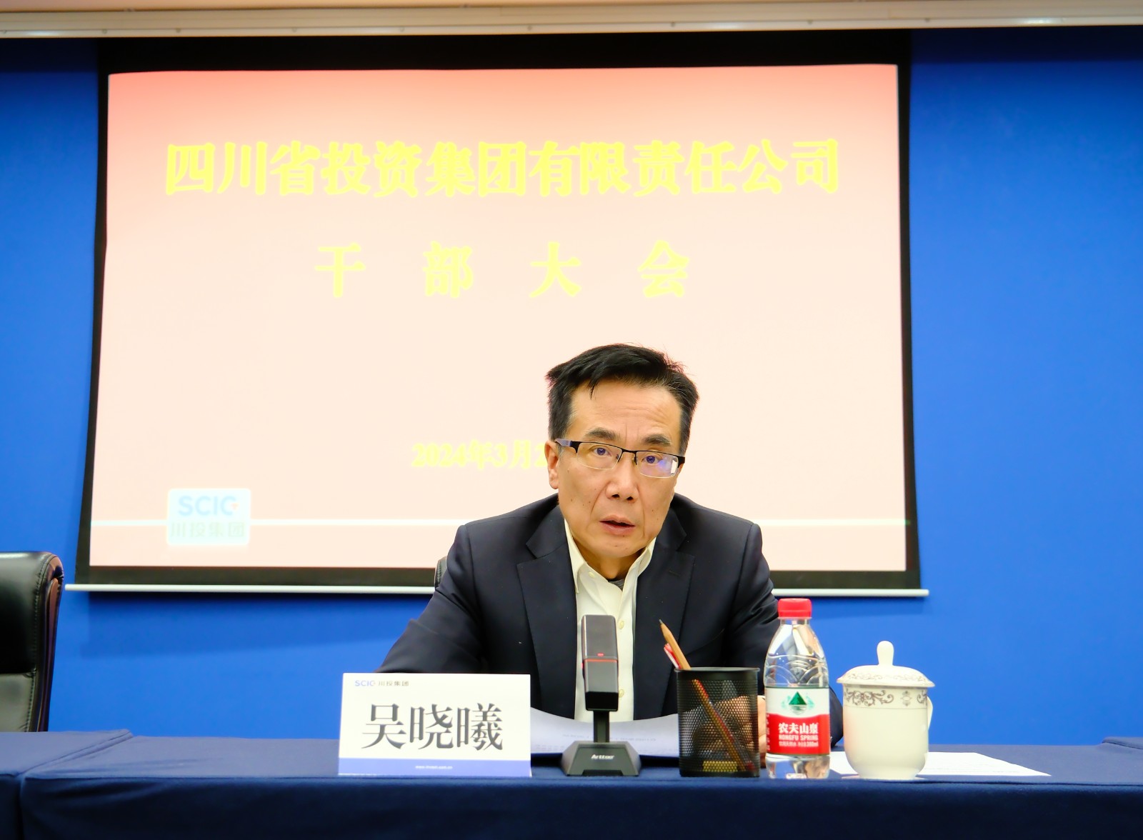 3月22日上午,川投集團召開干部大會。黨委書記、董事長吳曉曦出席會議并講話,黨委副書記、副董事長、總經(jīng)理李文志宣讀省委、省政府關于肖長青、朱莉同志的任職通知,黨委副書記、董事鄧凱主持會議,在家的集團公司領導班子成員出席會議。