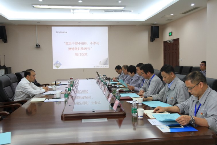 會上,川投氣電黨委書記、董事長楊超龍同志代表班子作川投集團黨員干部不組織、不參與賭博斂財公開承諾,全體班子成員簽訂了承諾書。督導(dǎo)組還在會后對氣電公司“三重一大”執(zhí)行情況、“三個專項整治”情況等進行了檢查。