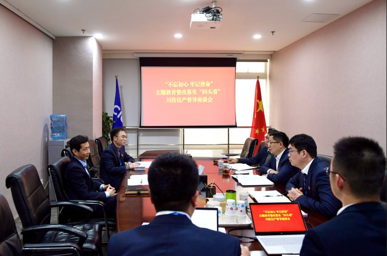 張昊副總經(jīng)理一行聽(tīng)取了川投信產(chǎn)公司黨支部書(shū)記、董事長(zhǎng)、總經(jīng)理王波關(guān)于川投信產(chǎn)“不忘初心、牢記使命”主題教育整改落實(shí)情況及專(zhuān)項(xiàng)整治工作的匯報(bào)。