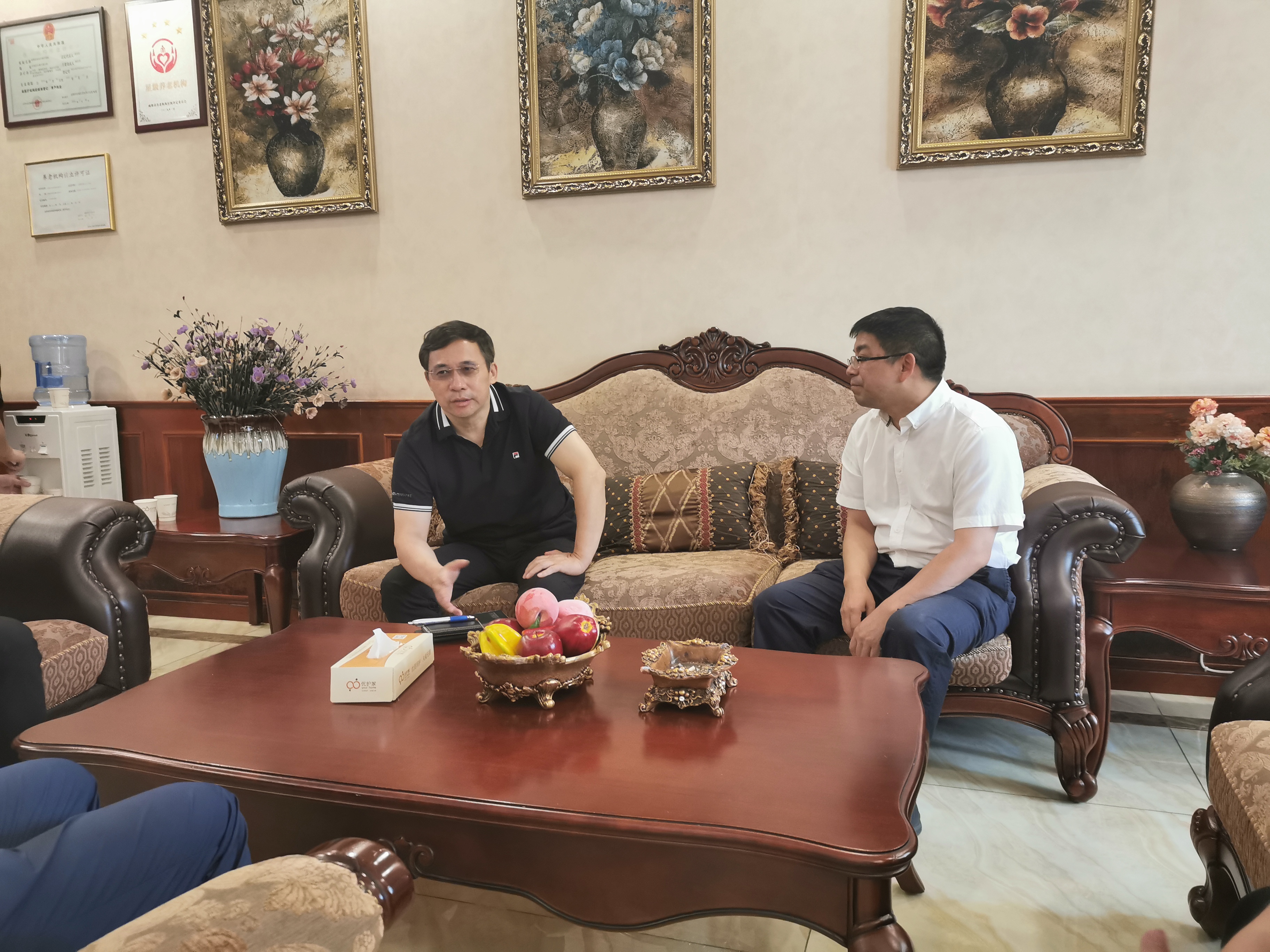 參觀介紹完護(hù)理院后,懷林總與吳恒松院長進(jìn)行了深入交流,就康福家健康管理有限公司發(fā)展路徑、優(yōu)護(hù)家護(hù)理院經(jīng)營情況、股東構(gòu)成、未來發(fā)展思路及醫(yī)保政策長照險(xiǎn)等問題深入探討,針對雙方布局康養(yǎng)產(chǎn)業(yè)差異性和協(xié)同效應(yīng)進(jìn)行探討,對合作思路進(jìn)行溝通,明確階段性工作任務(wù)。