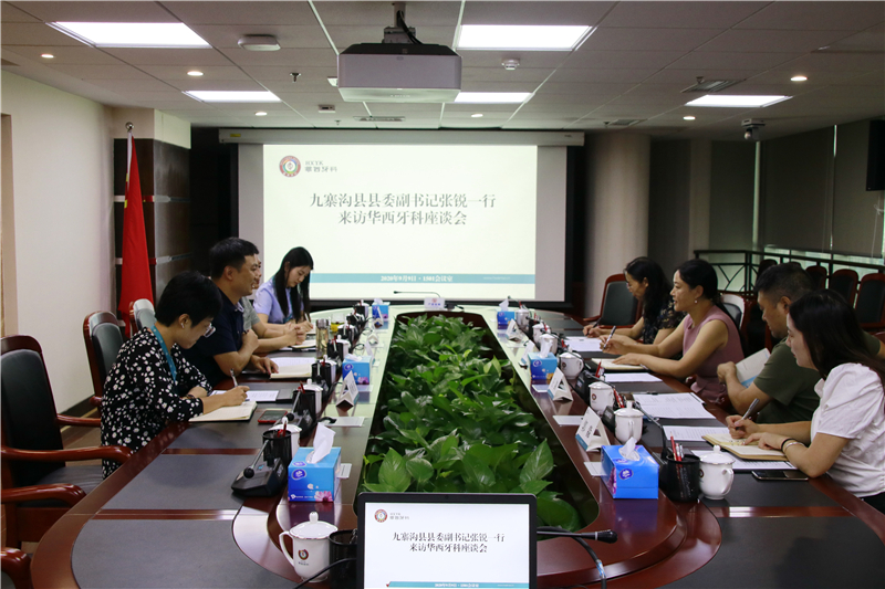 九寨溝縣商務(wù)和經(jīng)濟(jì)合作局、衛(wèi)健局、衛(wèi)健局大健康服務(wù)中心,華西牙科相關(guān)負(fù)責(zé)人參加座談。