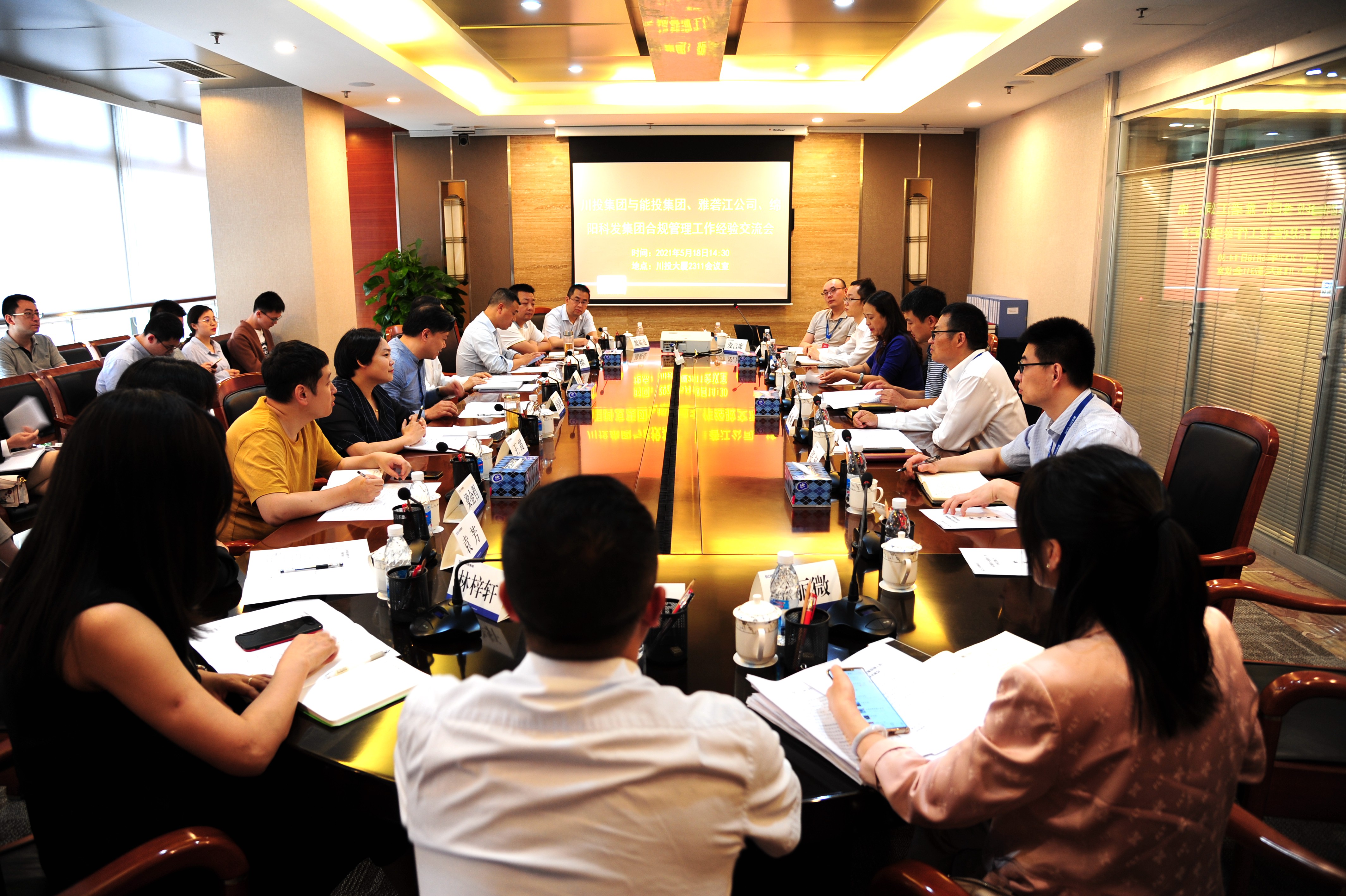 集團(tuán)公司法律事務(wù)部全體人員,四川能投集團(tuán)、雅礱江公司、綿陽科發(fā)集團(tuán)相關(guān)負(fù)責(zé)同志及合規(guī)管理專家等參加會議。