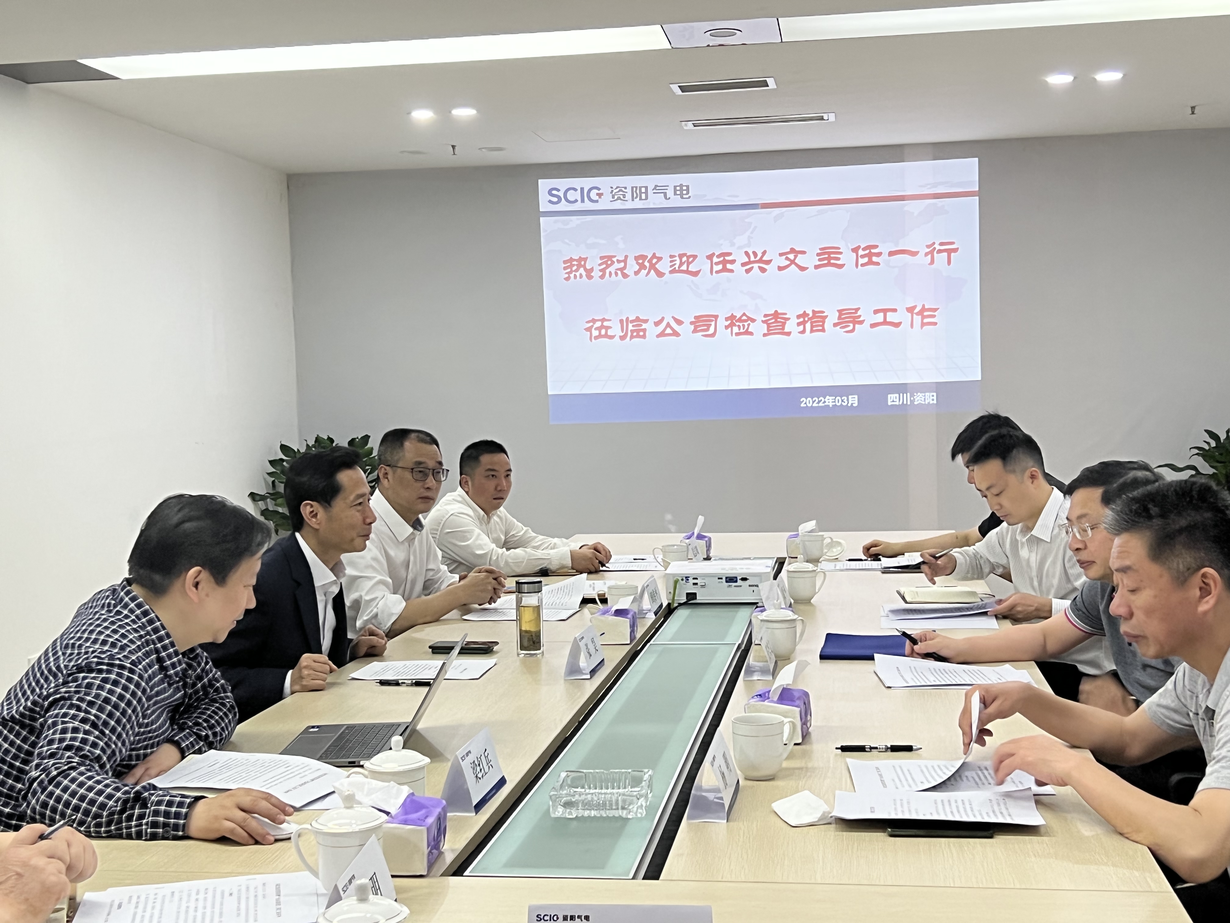 張昊對(duì)任興文一行表示熱烈歡迎,對(duì)集團(tuán)公司生產(chǎn)經(jīng)營(yíng)、項(xiàng)目投資、改革攻堅(jiān)、疫情防控、安全維穩(wěn)以及資陽(yáng)氣電建設(shè)概況、項(xiàng)目進(jìn)展情況及存在問(wèn)題等情況作工作匯報(bào)。
