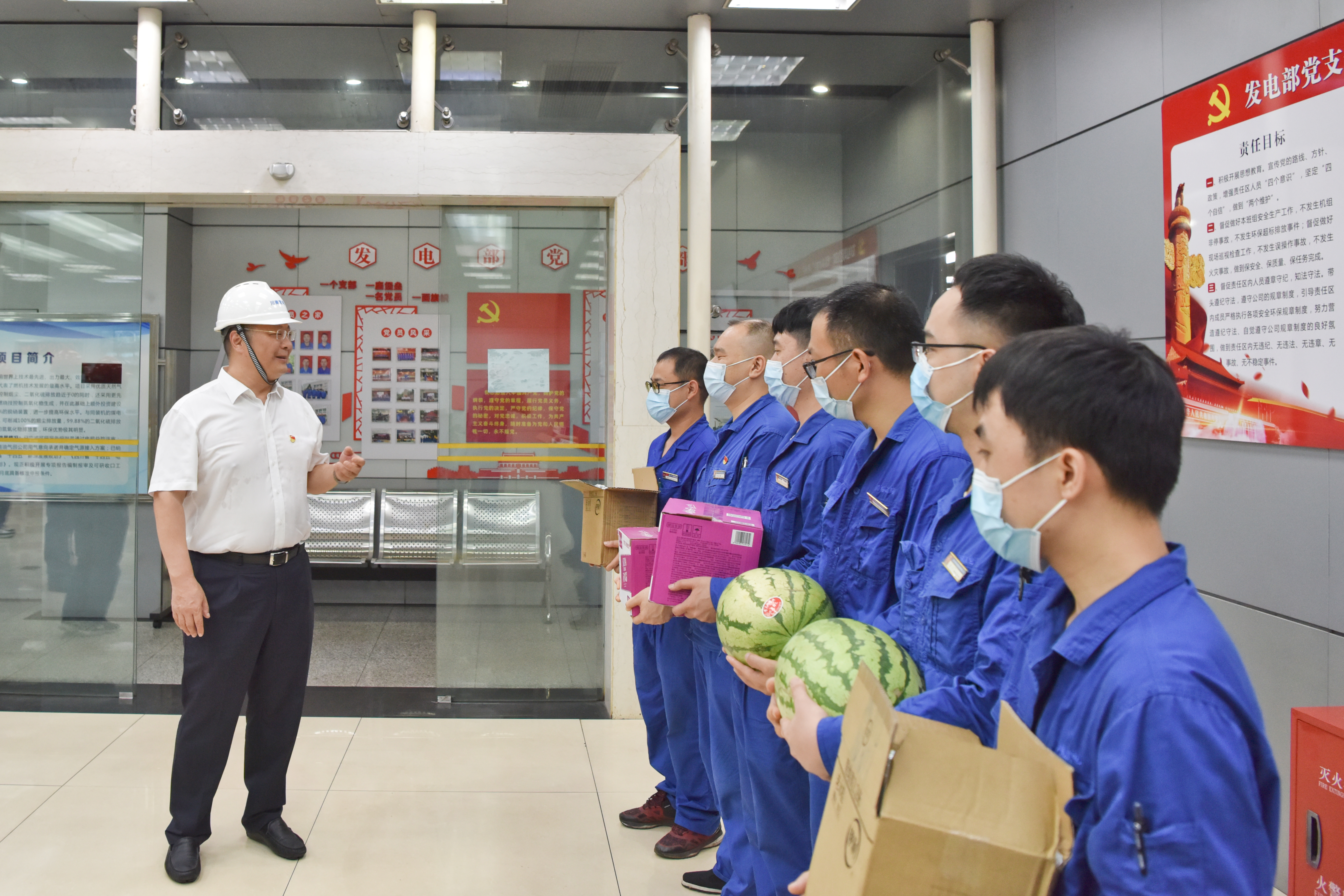 隨后,李文志為奮斗在電力保供第一線的員工送去了西瓜、蘇打水等防暑降溫物資,對大家在高溫天氣下堅守崗位的無私奉獻精神給予了充分肯定并表示感謝。他叮囑大家,天氣炎熱,在工作中要做好防暑降溫和勞動保護工作,在保障機組安全穩(wěn)定運行的同時也要確保自身的安全健康。他要求,川南發(fā)電公司在認真做好迎峰度夏電力保供工作的同時,要時刻把員工的安全健康和所需所想放在心上,關心關愛員工,持續(xù)做好夏季防暑降溫工作,確保安全、平穩(wěn)度夏。