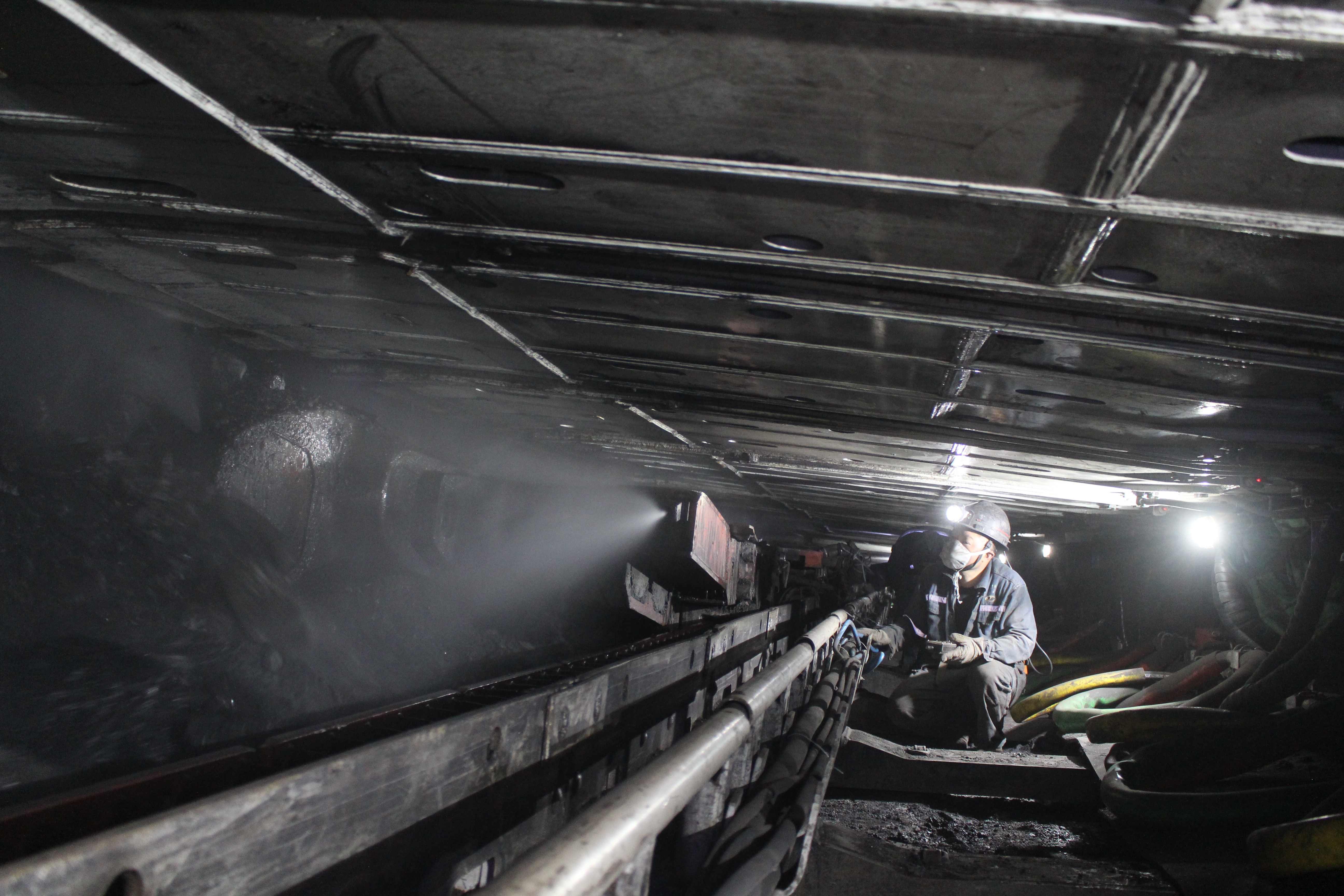 凌晨5點(diǎn)11分,位于嘉陽集團(tuán)嘉陽煤礦天錫井井下160米處的1205采面尾巷,采煤三隊(duì)的8名工人分散在整條巷道中緊張忙碌著,此時(shí)溫度計(jì)上的指針停在了25攝氏度的位置。從凌晨1點(diǎn)一直跟產(chǎn)的采煤三隊(duì)隊(duì)長王均和早早來上班的礦長陳文兵一見面,連招呼都沒來得及打,就開始交流工作。
