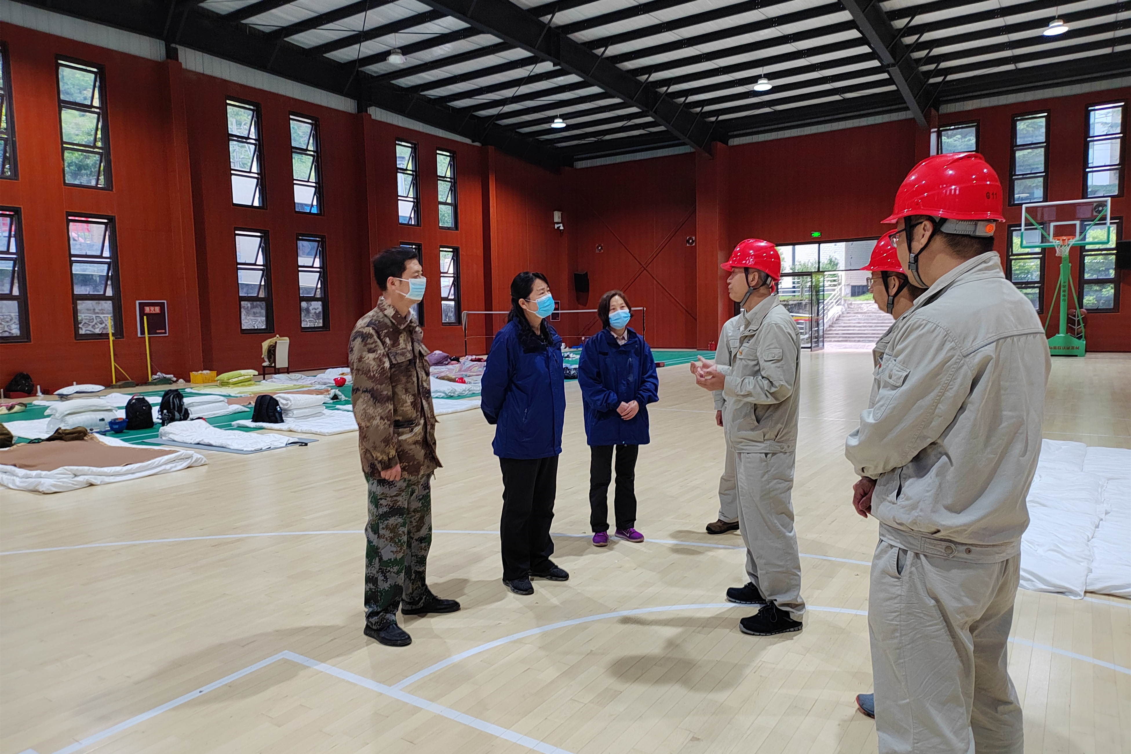 彭映梅一行到現(xiàn)場(chǎng)人員應(yīng)急安置點(diǎn)體育館,查看人員應(yīng)急安置情況,傳達(dá)黨中央、國(guó)務(wù)院及習(xí)近平總書記對(duì)瀘定“9.5”地震搶險(xiǎn)救災(zāi)工作的重要指示,轉(zhuǎn)達(dá)省委省政府、市委市政府對(duì)大家的關(guān)心與慰問(wèn)。隨后對(duì)公司現(xiàn)場(chǎng)營(yíng)地受災(zāi)情況進(jìn)行了實(shí)地查看,詳細(xì)了解公司電力生產(chǎn)受損情況及當(dāng)前抗災(zāi)自救工作開展情況。