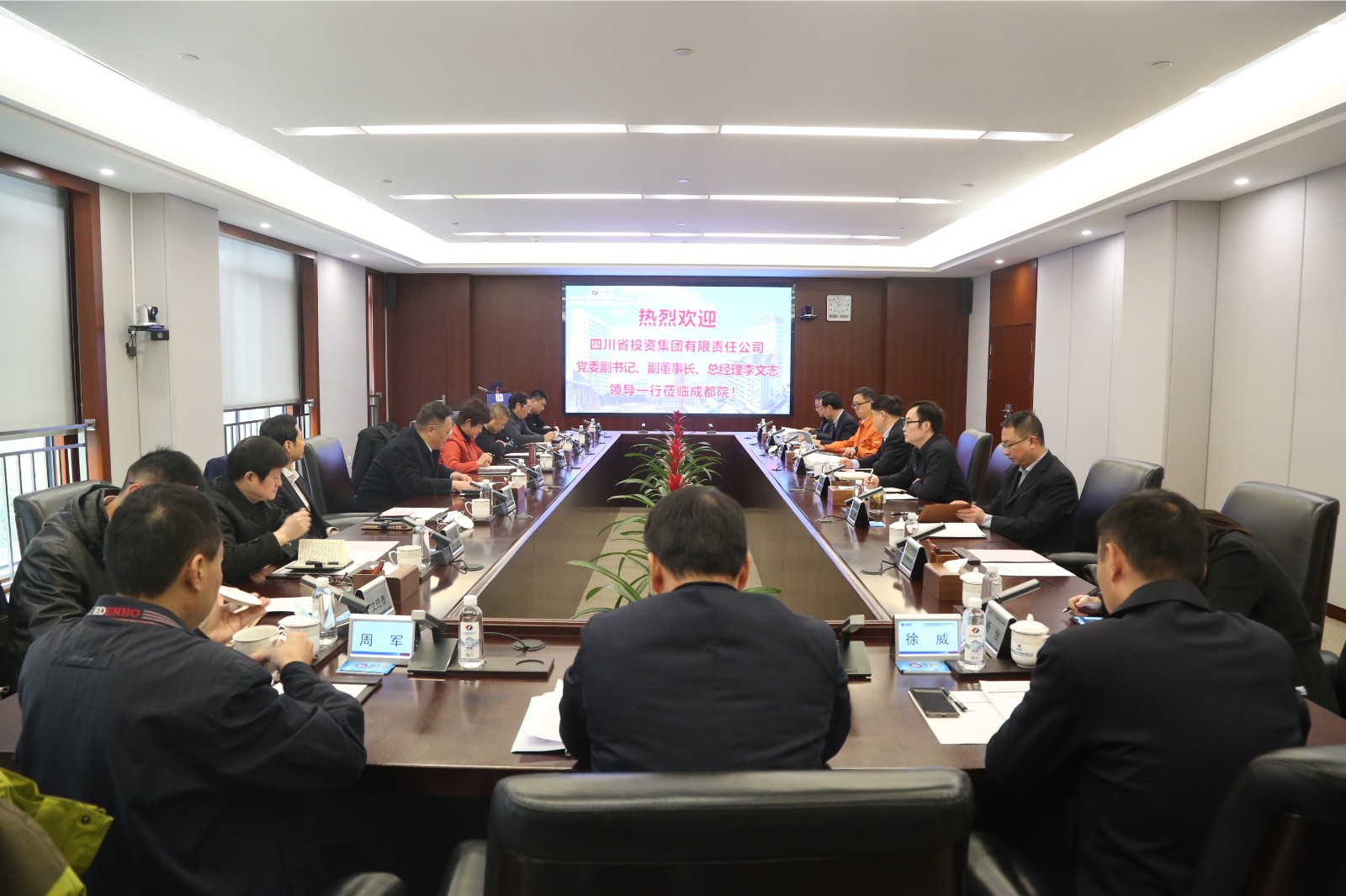 何彥鋒首先對(duì)李文志一行的來(lái)訪表示歡迎,并對(duì)川投集團(tuán)長(zhǎng)期以來(lái)對(duì)成都院建設(shè)發(fā)展的關(guān)心和幫助表示感謝。何彥鋒表示,成都院將持續(xù)深化與川投集團(tuán)的“歷史友誼”,繼續(xù)發(fā)揮在清潔能源領(lǐng)域規(guī)劃設(shè)計(jì)的領(lǐng)先優(yōu)勢(shì)和全產(chǎn)業(yè)鏈一體化綜合實(shí)力,與川投集團(tuán)齊頭并進(jìn),以更快的速度、更顯著的成效將合作向縱深推進(jìn),攜手立足四川、輻射全國(guó)。