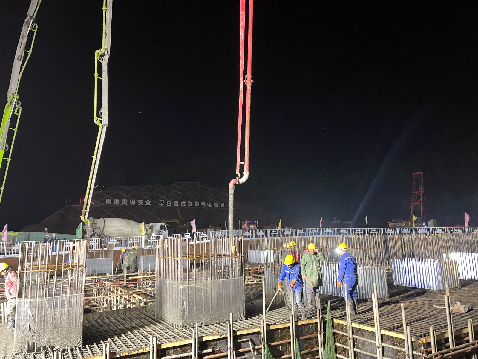 12月2日凌晨4點46分,經(jīng)過近11小時的連續(xù)奮戰(zhàn),資陽燃?xì)怆娬?2余熱鍋爐底板基礎(chǔ)澆筑圓滿完成。該項目節(jié)點,是資陽燃?xì)怆娬纠^11月5日#1余熱鍋爐筏板基礎(chǔ)澆筑后的第二個大體積混凝土澆筑,時間僅隔一個月。