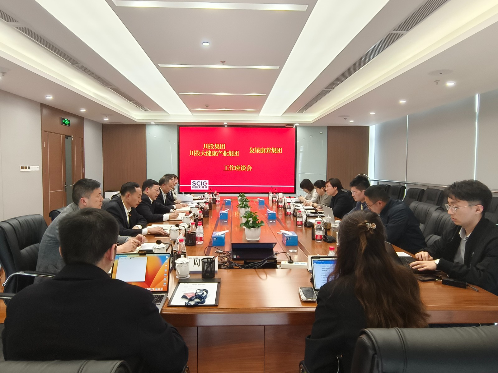 川投大健康產(chǎn)業(yè)集團(tuán)黨委書(shū)記、董事長(zhǎng)、總經(jīng)理魯洪斌,川投大健康有關(guān)人員參加座談。