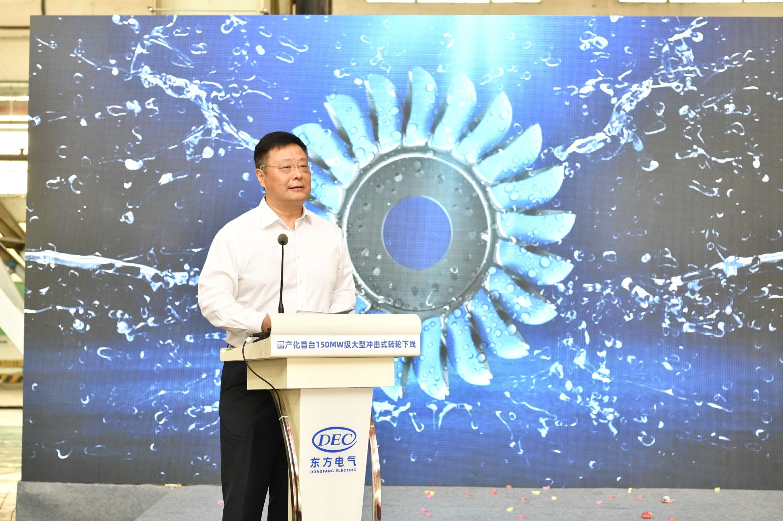 東方電氣集團黨組書記、董事長俞培根代表東方電氣集團向出席活動的領導專家表示熱烈歡迎,向參與150兆瓦級沖擊式轉(zhuǎn)輪國產(chǎn)化研制的全體人員表示熱烈祝賀,向項目重要合作方(川投集團)表示衷心感謝。他表示,本次完工下線的國產(chǎn)化首臺150兆瓦級沖擊式轉(zhuǎn)輪是東方電氣集團深入踐行國家“雙碳”戰(zhàn)略、瞄準國內(nèi)空白和世界一流開展關鍵核心技術攻關、推動我國能源裝備自立自強的具體實踐。