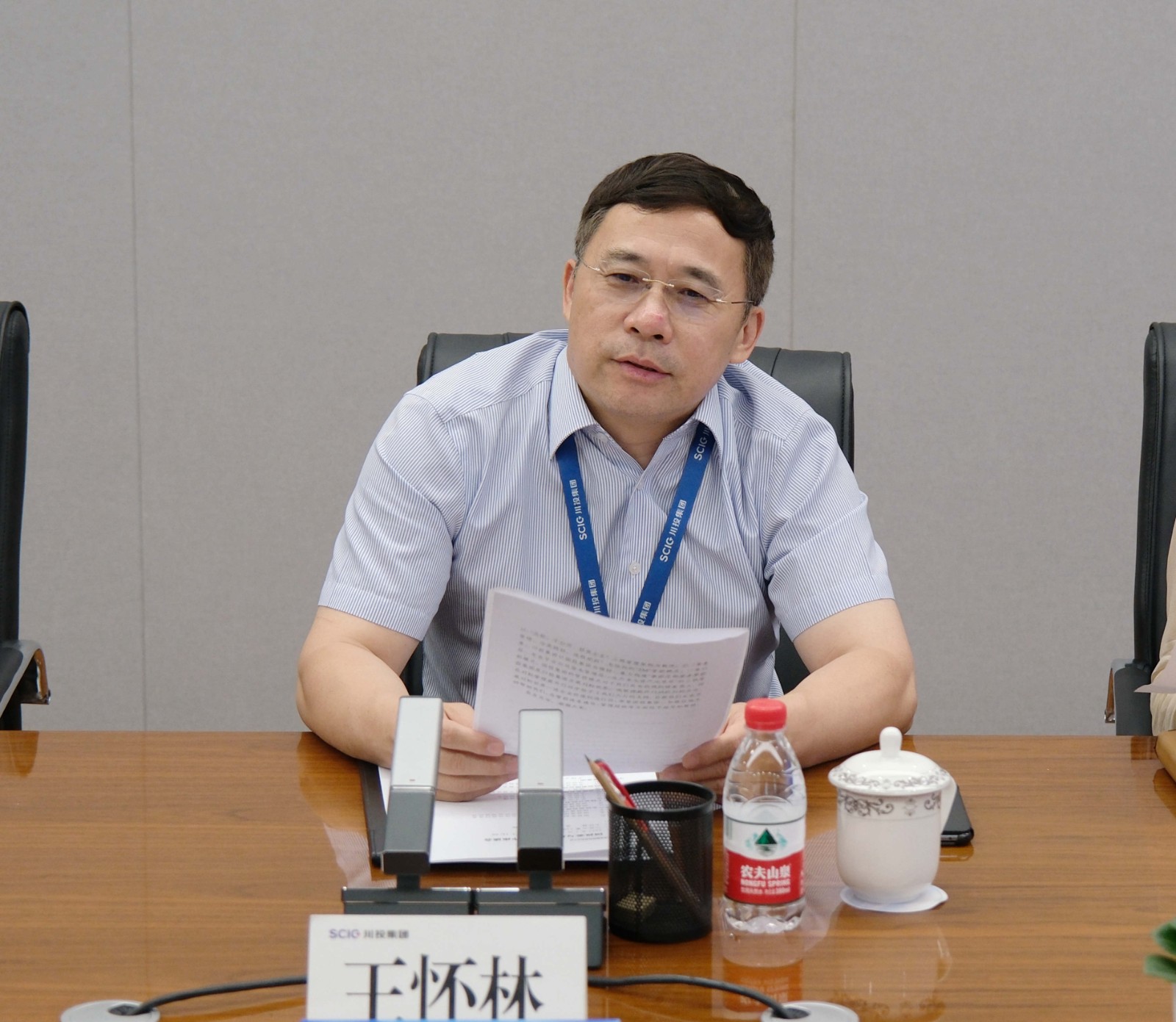 交流會(huì)上,王懷林對(duì)黃新民一行表示熱烈歡迎,對(duì)國(guó)投委長(zhǎng)期對(duì)川投集團(tuán)支持表示感謝,并介紹了川投集團(tuán)“1 3”產(chǎn)業(yè)發(fā)展布局和經(jīng)營(yíng)情況。王懷林表示,川投集團(tuán)與國(guó)投集團(tuán)自攜手開發(fā)雅礱江流域水電以來(lái),建立了深厚合作關(guān)系和合作友誼,未來(lái)雙方將在能源產(chǎn)業(yè)、健康產(chǎn)業(yè)、電子信息產(chǎn)業(yè)、資本運(yùn)作等方面加強(qiáng)溝通交流,不斷深化產(chǎn)業(yè)協(xié)同協(xié)作。同時(shí)也希望在國(guó)投委積極組織下,搭建共建共享平臺(tái),落地一批優(yōu)質(zhì)項(xiàng)目,共同推動(dòng)高質(zhì)量發(fā)展。