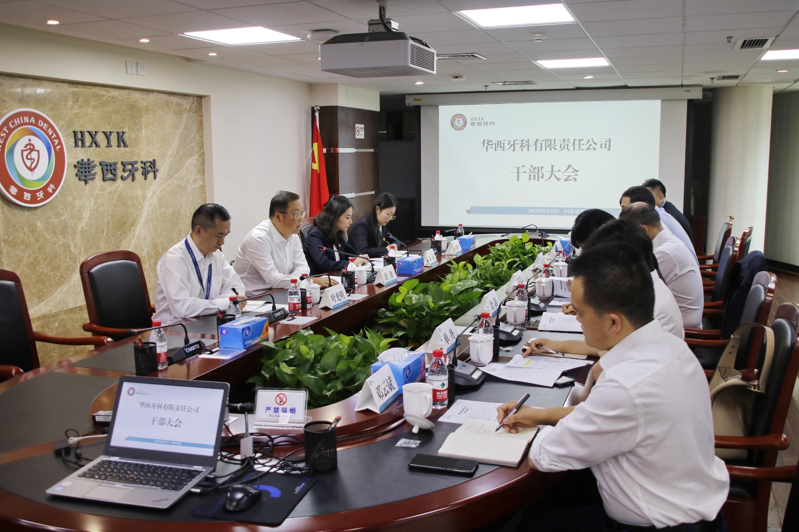 9月25日,華西牙科召開干部大會。集團公司黨委委員、副總經(jīng)理舒勇出席會議。華西牙科黨委書記、董事長、總經(jīng)理劉凌云主持會議。