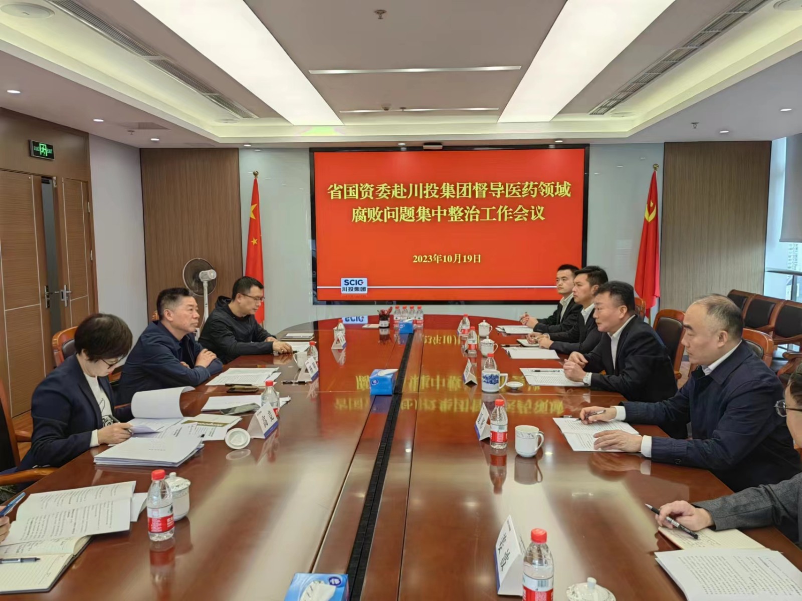 10月19日,省國資委二級巡視員楊明帶隊赴川投集團(tuán)督導(dǎo)檢查醫(yī)藥領(lǐng)域腐敗問題集中整治工作開展情況,駐川投集團(tuán)紀(jì)檢監(jiān)察組組長、集團(tuán)黨委委員、紀(jì)委書記李明舟陪同檢查并主持工作座談會議。