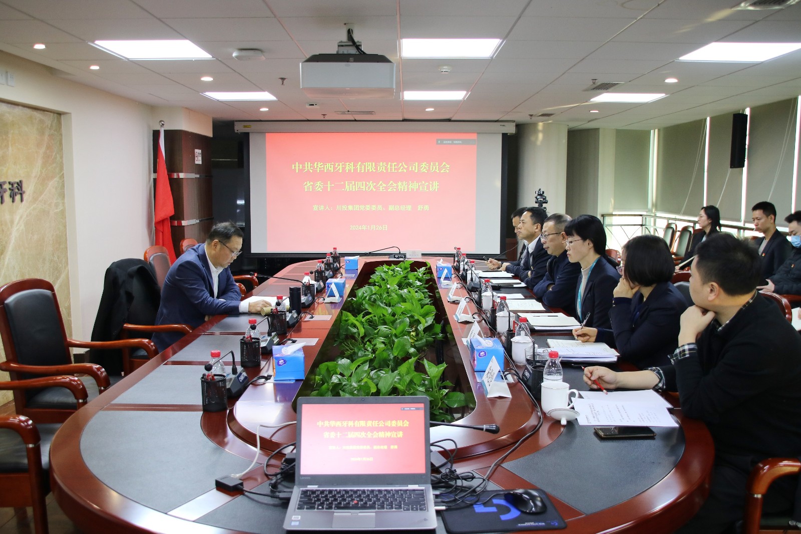 1月26日上午,集團(tuán)公司黨委委員、副總經(jīng)理舒勇赴華西牙科開展春節(jié)走訪慰問活動(dòng),并進(jìn)行省委十二屆四次全會(huì)精神宣講。