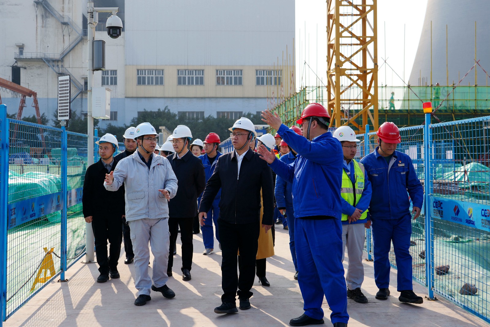 郭宏川一行深入川投瀘州天然氣發(fā)電項目建設現(xiàn)場,詳細了解了項目建設規(guī)劃、施工人員管理以及瀘州市火電裝機和電力能源供應等情況,聽取了瀘州氣電董事長、總經(jīng)理劉勝金關于川投瀘州天然氣發(fā)電項目基本情況、工程建設進度、安全生產(chǎn)、復工復產(chǎn)等工作情況的匯報。