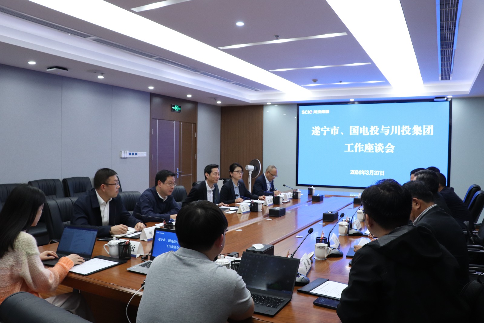 集團(tuán)公司總經(jīng)理助理、資本運(yùn)營(yíng)部部長(zhǎng)龔圓;遂寧市經(jīng)合局、高新區(qū);國(guó)電投新能源;川投新能源、川投資本等相關(guān)負(fù)責(zé)人參加座談。