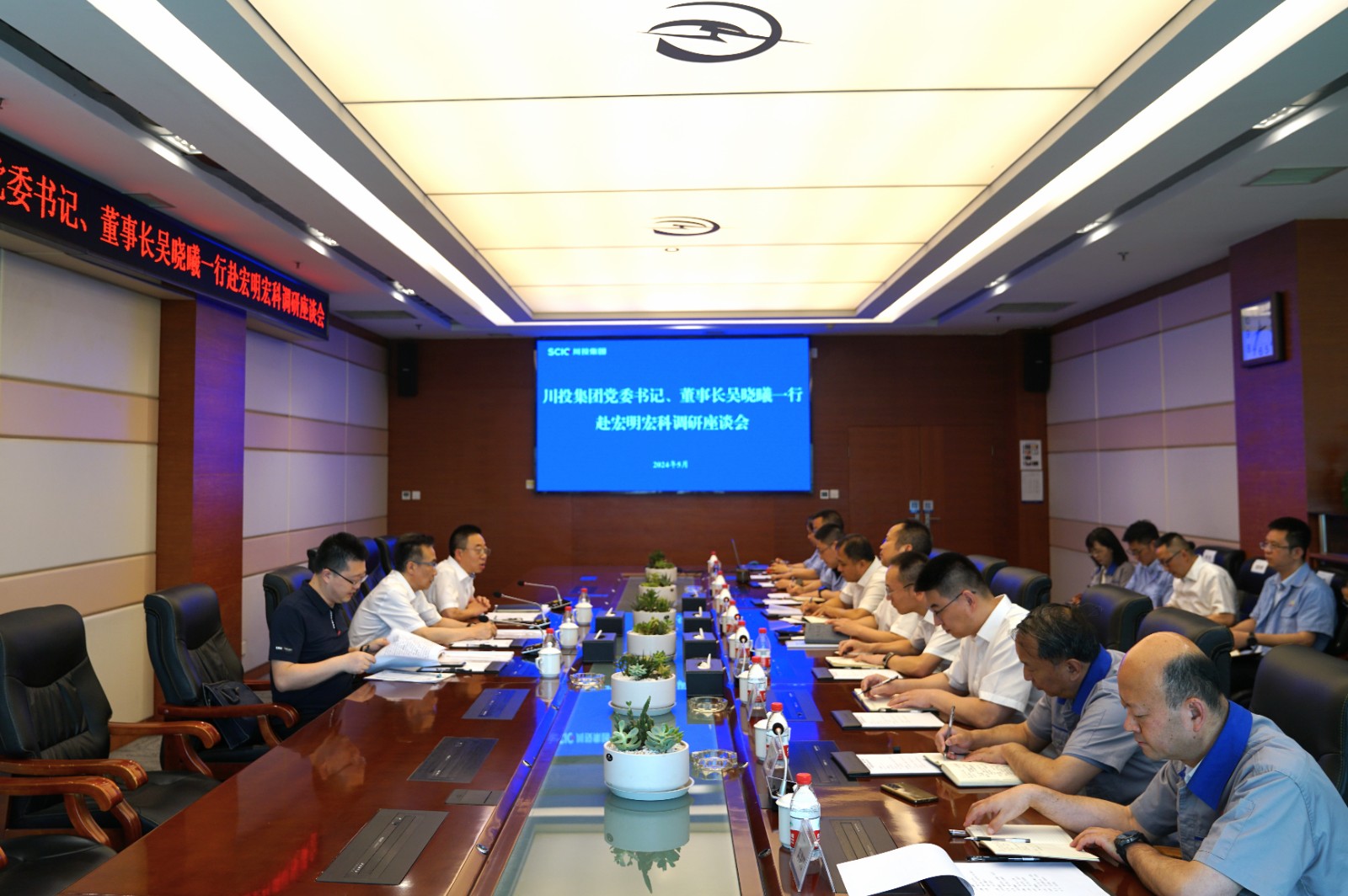 5月24日,川投集團黨委書記、董事長吳曉曦率隊赴宏明宏科督導調(diào)研。川投集團副總經(jīng)理、川投信產(chǎn)黨委書記、董事長、宏明電子董事長肖長青參加調(diào)研。