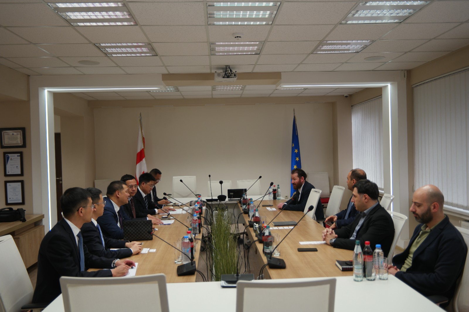 在首都第比利斯期間,王懷林一行分別拜會了格魯吉亞第一副總理兼經(jīng)濟與可持續(xù)發(fā)展部部長列萬·達維塔什維利、能源協(xié)調(diào)委員會主席達維特·拉瑪利亞、國家電網(wǎng)公司第一副總經(jīng)理拉沙·哈米亞達什維利。在拜訪座談過程中,王懷林向格方介紹了川投集團基本情況和收購哈多里水電站以來的運營情況,并表示將充分利用中格建立戰(zhàn)略伙伴關(guān)系契機、積極踐行共建“一帶一路”倡議,希望格方繼續(xù)支持川投集團在格魯吉亞經(jīng)營發(fā)展和后續(xù)清潔能源市場項目投資;格方對王懷林一行到訪表示歡迎,重點介紹了格魯吉亞良好的營商環(huán)境,豐富的風(fēng)、光、水等清潔能源資源及巨大的投資潛力,并希望川投集團積極參與格魯吉亞風(fēng)電、抽水蓄能和電化學(xué)儲能等領(lǐng)域項目開發(fā)。