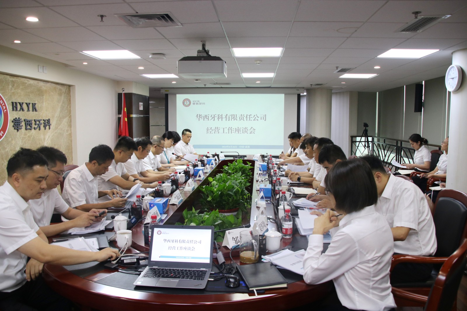 6月26日,華西牙科召開經(jīng)營工作座談會,集團(tuán)公司黨委委員、副總經(jīng)理舒勇出席會議并講話。集團(tuán)經(jīng)營管理部副部長王章名,華西牙科在家班子成員,所屬公司負(fù)責(zé)人,中層管理人員參加會議。