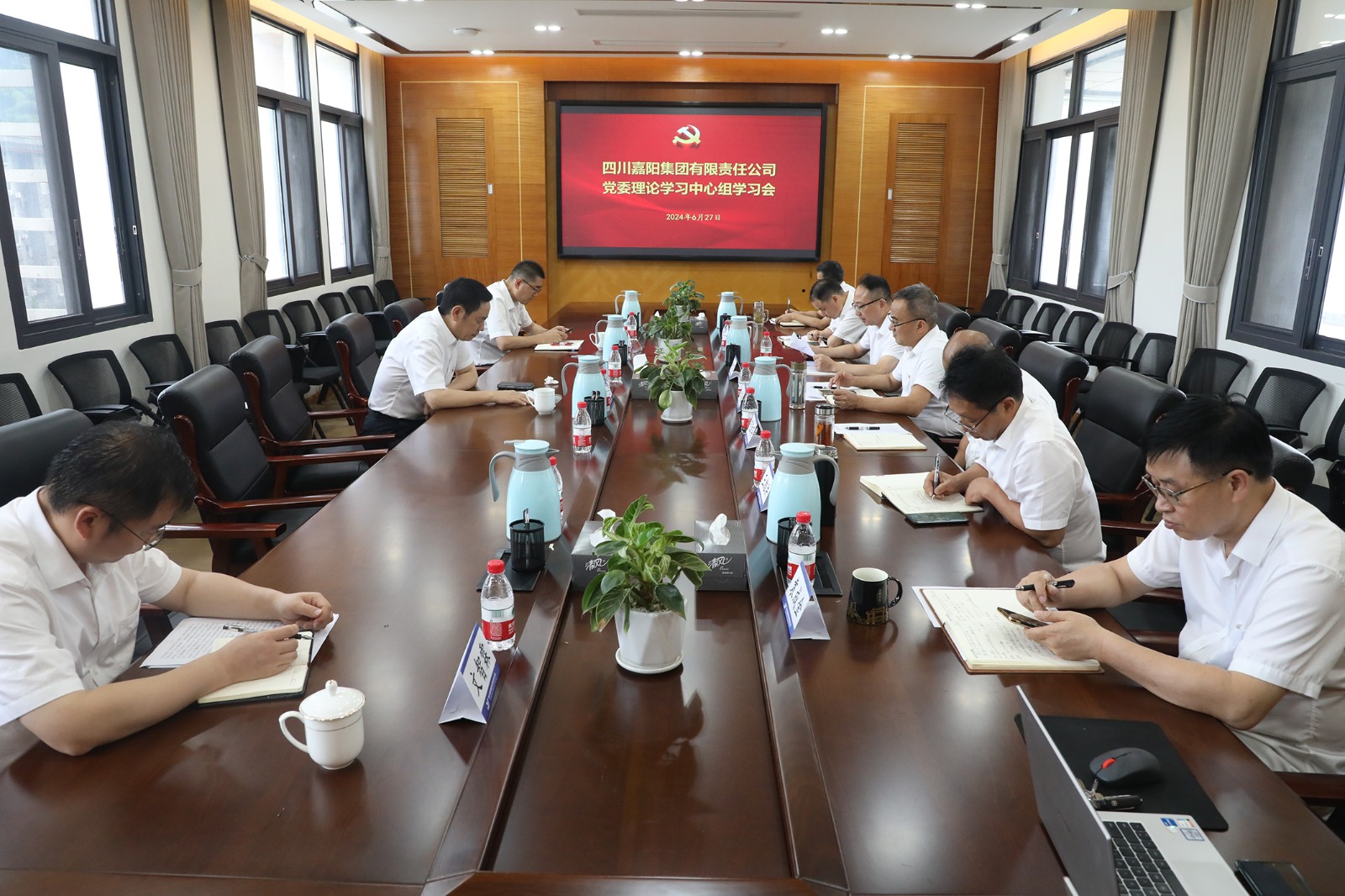 6月27日,嘉陽集團召開黨委理論學習中心組學習會,重點圍繞“發(fā)展新質生產(chǎn)力,推動企業(yè)高質量發(fā)展”主題開展專題學習研討。川投集團黨委副書記、董事鄧凱參加會議,點評學研情況。黨委書記、董事長杜勤主持會議。