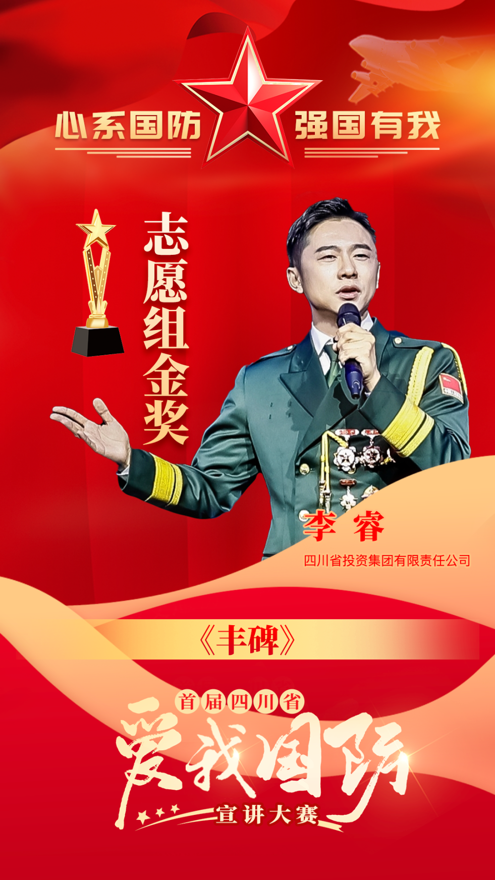 7月8日,首屆四川省“愛我國防”宣講大賽成果展演在成都舉行,來自全省21個市州和省直有關部門的170名選手代表參與展演,展示大賽成果,并現(xiàn)場揭曉大賽決出的金獎和銀獎獲得者。川投集團所屬川投能源李睿和其作品《豐碑》從集團初賽、省國資國企系統(tǒng)賽中層層勝出,最終斬獲省級決賽志愿組金獎。