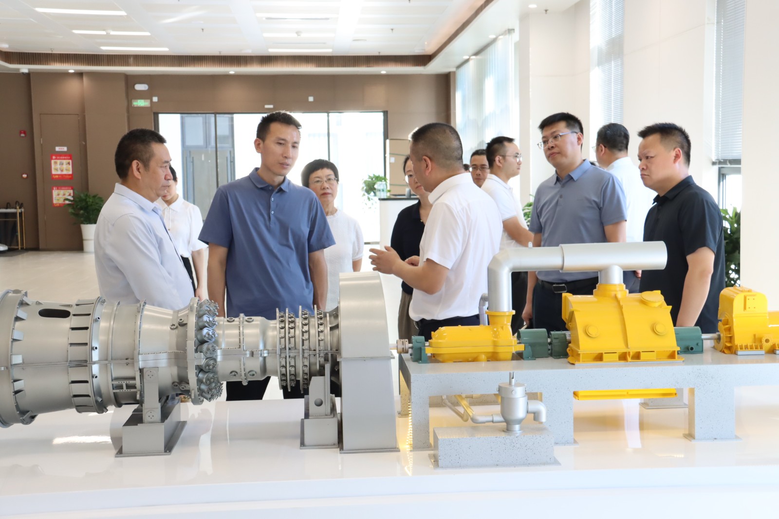 在一樓展示廳,張能坤一行詳細(xì)了解了資陽燃?xì)怆娬卷?xiàng)目基本概況、燃?xì)獍l(fā)電產(chǎn)業(yè)優(yōu)勢、H級燃機(jī)機(jī)組特性等方面情況;在智慧管控中心,張能坤一行實(shí)地查看機(jī)組運(yùn)行情況,聽取了資陽氣電在迎峰度夏電力保供方面的工作情況匯報(bào)。