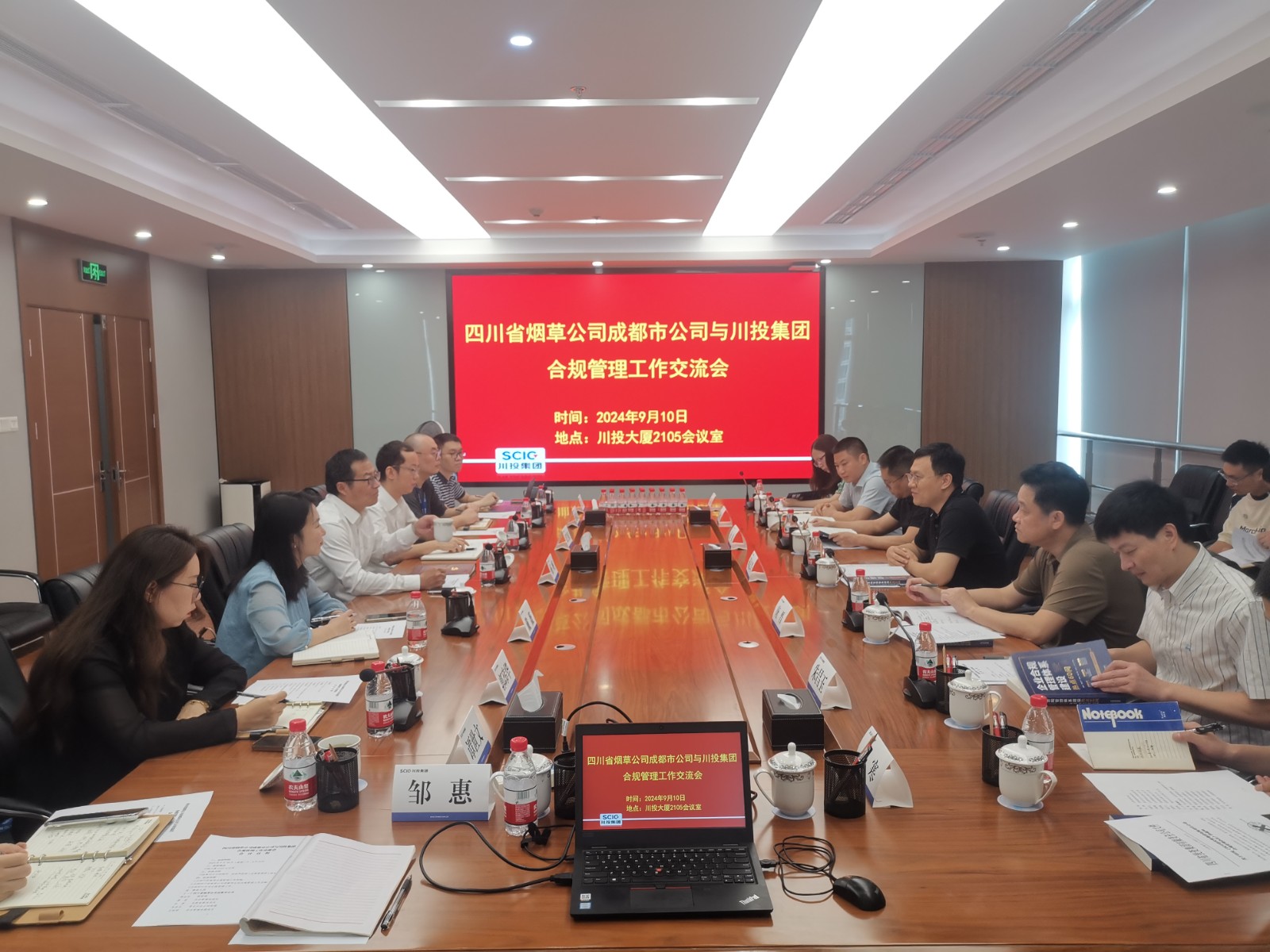 9月10日,四川省煙草公司成都市公司副經(jīng)理蔣志興率隊到訪川投集團,雙方就企業(yè)合規(guī)管理工作展開交流。集團公司總法律顧問、法務(wù)風(fēng)控部部長楊帆主持交流會議。