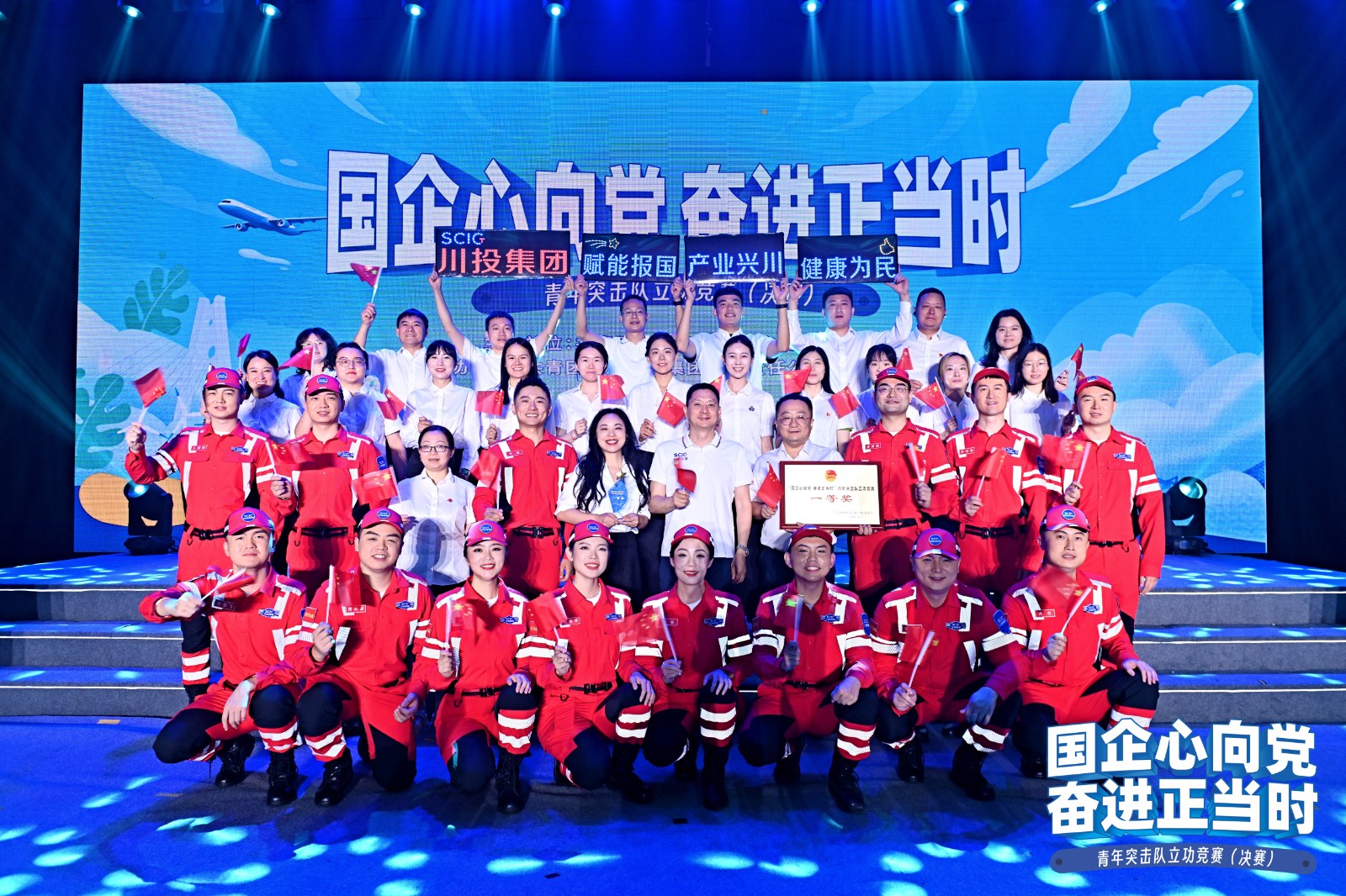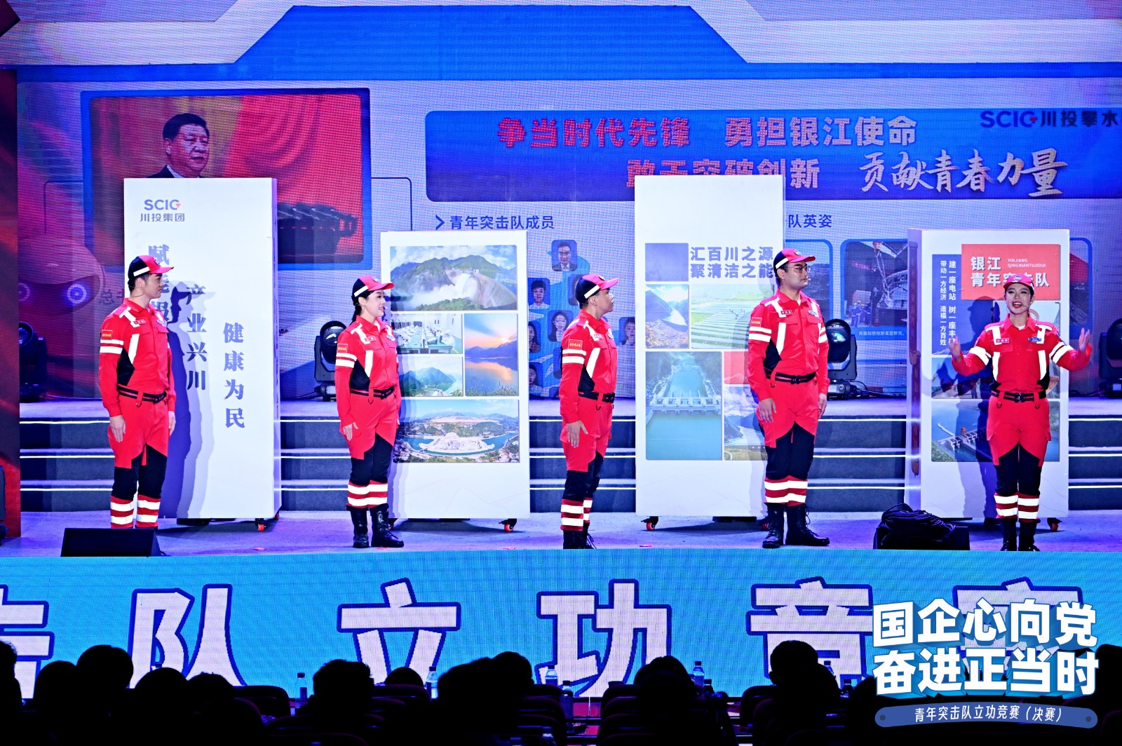 川投銀江青年突擊隊只是中國千千萬萬青年突擊隊中的一支。在“國企心向黨?奮進正當時”青年突擊隊立功競賽決賽現(xiàn)場,來自交通、建筑、電力、石油等多個行業(yè)的青年突擊隊,通過飽含深情的現(xiàn)場講述和鮮活生動的情景演繹,展示了國企青年始終奮戰(zhàn)在科技攻關、項目建設、生產經營、搶險救援等各種“急難險重新”任務一線的拼搏場景,充分展現(xiàn)了四川國企青年愛黨愛國,興企強企,緊緊圍繞推進建設現(xiàn)代化產業(yè)體系、發(fā)展新質生產力等重大時代課題,以實際行動踐行“請黨放心,強國有我”的使命擔當。