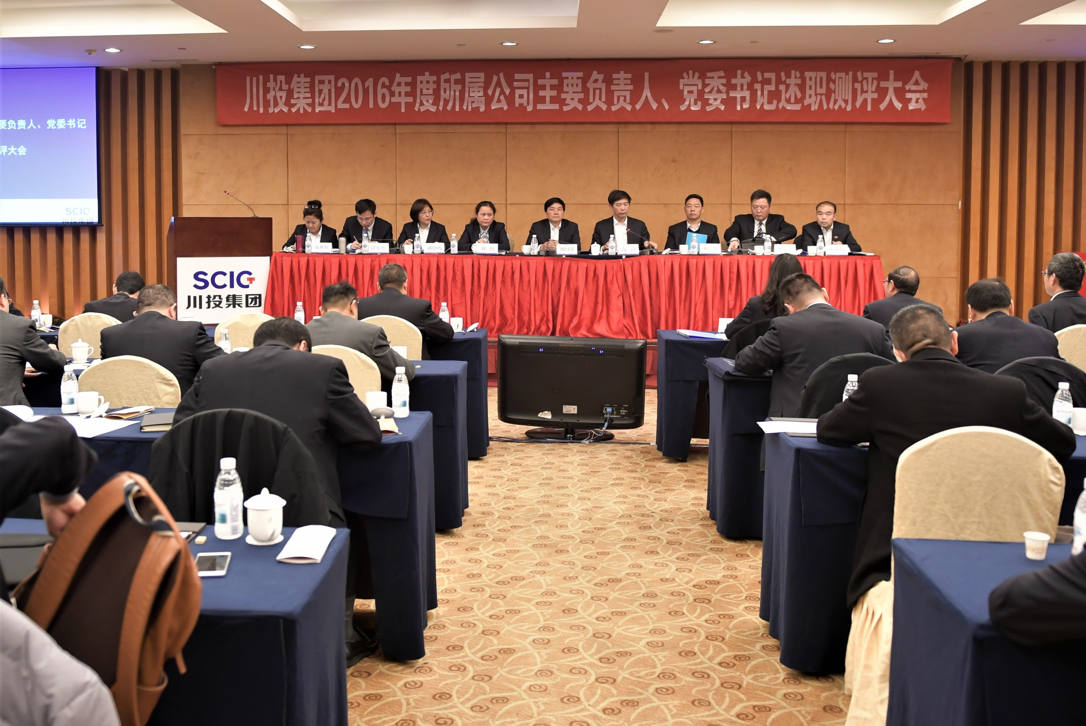 根據(jù)集團(tuán)公司年度考核工作安排,2017年2月16日下午,集團(tuán)公司所屬企業(yè)主要負(fù)責(zé)人、黨委書記述職測評大會在川投國際酒店召開,集團(tuán)所屬17家公司主要負(fù)責(zé)人、黨委書記公開述職。會議由集團(tuán)公司副董事長、黨委副書記、總經(jīng)理主持,四川省國有企業(yè)監(jiān)事會第三室主席劉紅及專職監(jiān)事羅賢明、茍新蓉到會指導(dǎo),集團(tuán)公司班子成員、本部中層副職以上管理人員、集團(tuán)所屬企業(yè)主要負(fù)責(zé)人、黨委書記、黨建部門負(fù)責(zé)人等近80人參加了會議。