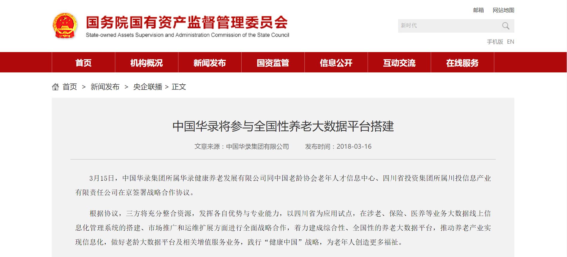 3月15日,中國華錄集團(tuán)所屬華錄健康養(yǎng)老發(fā)展有限公司同中國老齡協(xié)會(huì)老年人才信息中心、四川省投資集團(tuán)所屬川投信息產(chǎn)業(yè)有限責(zé)任公司在京簽署戰(zhàn)略合作協(xié)議。