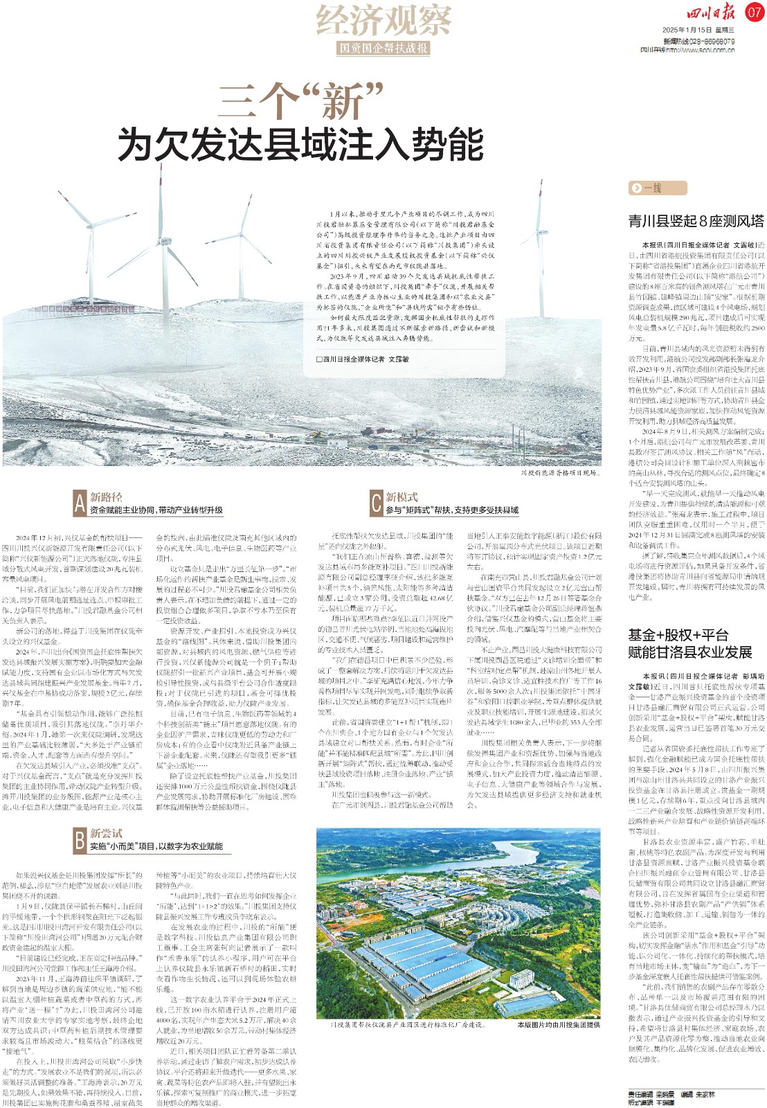 托底性幫扶欠發(fā)達(dá)縣域,川投集團(tuán)的“能量”還向儀隴之外輻射。