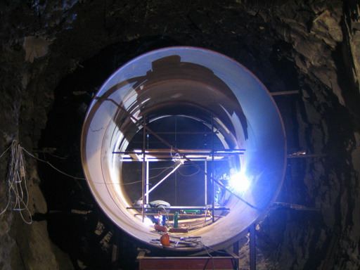 大發(fā)水電站壓力鋼管已從下平段開始安裝