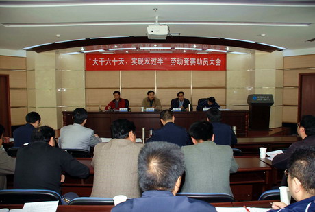 王新在會(huì)上宣讀了公司《關(guān)于在全工區(qū)范圍內(nèi)開展“大干六十天,實(shí)現(xiàn)雙過半”勞動(dòng)競(jìng)賽的通知》。