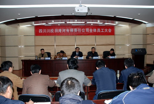 李昌偉在會上宣讀了公司《關于公司機構調整的通知》和《關于韓云文等職務聘免的通知》。經公司辦公會研究并報董事會批準,撤銷:仁宗海項目管理部、金窩項目管理部、大發(fā)項目管理部、送出工程建設管理部、總工程師辦公室、物資部。設立:辦公室、人力資源部、黨群工作部、資金財務部、電力營銷部、工程建設管理部、安全環(huán)保部、計劃合同部、田灣河水力發(fā)電總廠、成都辦事處、后勤服務管理中心。