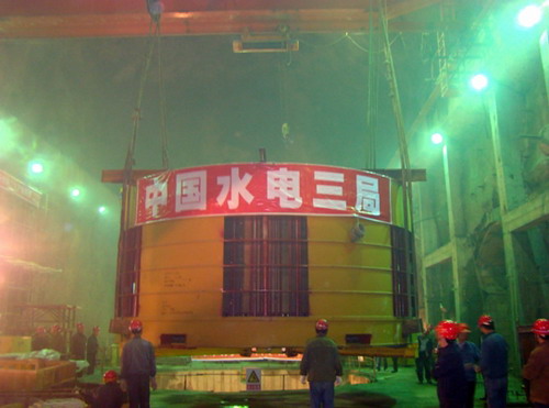 7月17日10時18分,仁宗海水庫電站1號發(fā)電機組定子順利吊入機坑,為確保完成2008年度仁宗海電站工程建設目標奠定了堅實基礎。