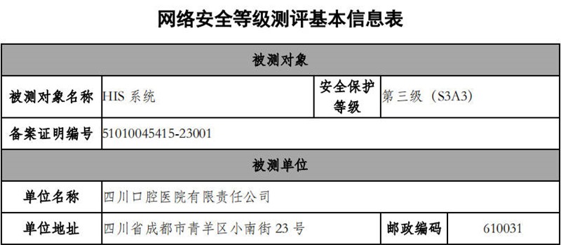 此次認證的通過,不僅提高了四川口腔醫(yī)院信息系統(tǒng)的安全水平,也為醫(yī)院的信息化建設奠定了更加堅實的基礎。在未來的工作中,四川口腔醫(yī)院將繼續(xù)加強網絡安全防護措施,確保醫(yī)院信息系統(tǒng)的安全穩(wěn)定運行,切實守護每一位患者的信息安全。