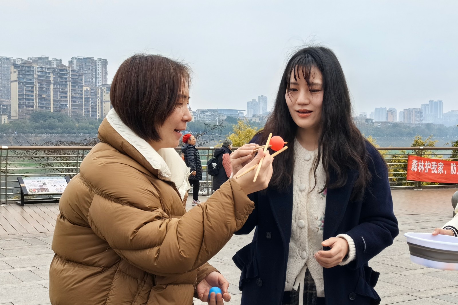 活動中,“女神們”被分為5個小組,分別在“紙杯傳球”“筷子接力夾彩球”“原地踏步走挑戰(zhàn)”“夾紙頂杯”“貪吃蛇”5個趣味比賽項目上一較高下。雖是趣味比賽,但各隊依然奮力爭先,過程中不時呈現(xiàn)東倒西歪、“人仰馬翻”的歡樂場面,心有靈犀的默契配合?!芭駛儭狈e極參與,全心投入比拼,各小組你追我趕,現(xiàn)場加油聲、喝彩聲、歡笑聲此起彼伏,引得過往群眾也駐足觀看。