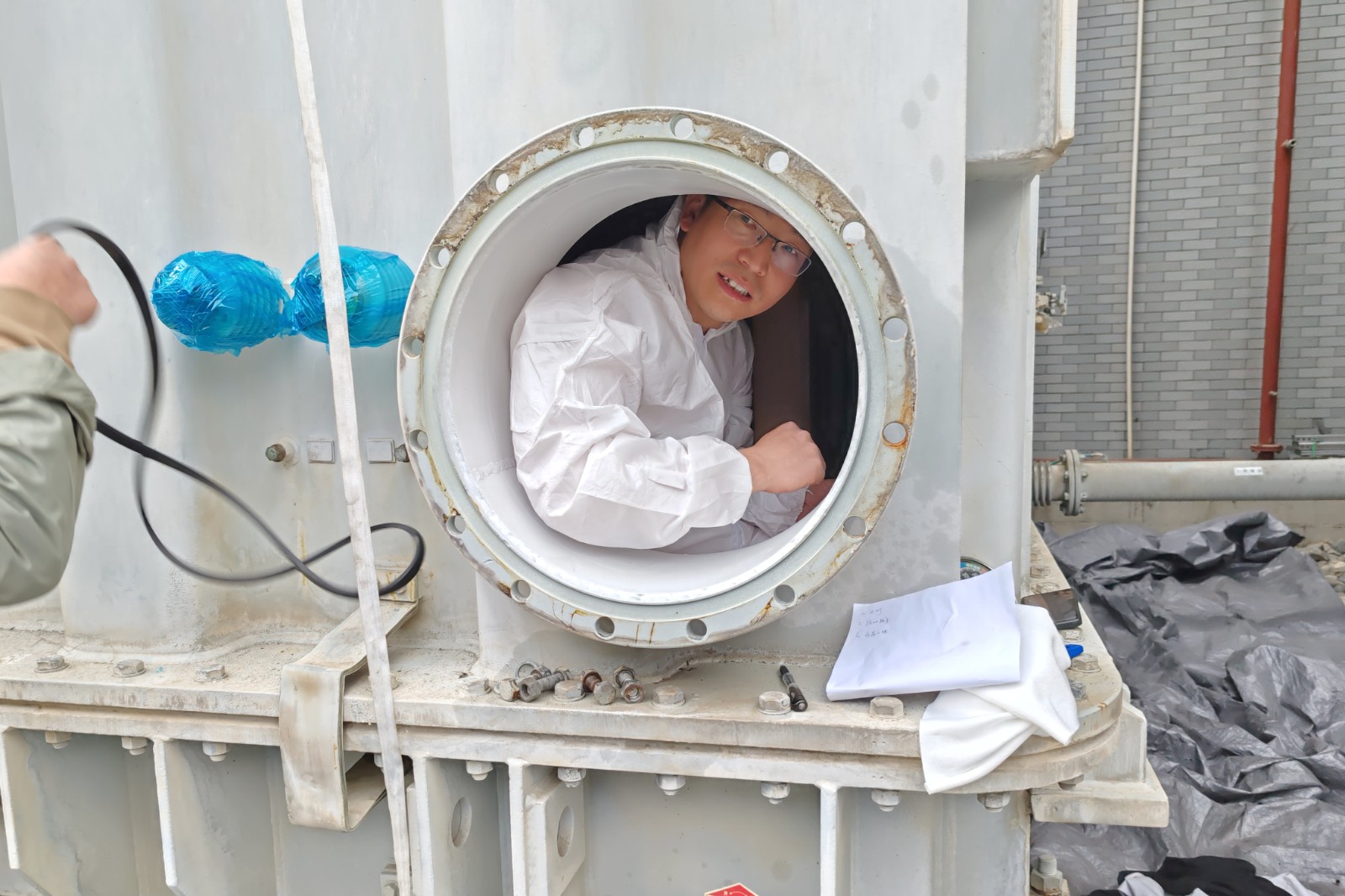 檢修采用排油鉆檢的方式,技術(shù)人員身著專業(yè)工作服,鉆進狹窄復(fù)雜的變壓器油箱內(nèi)部,對變壓器繞組及油箱內(nèi)其他組件進行全面“體檢”,確保各部件完好無異常。期間,完成了100余處密封更換、修前修后試驗、缺陷處理和技術(shù)改造等多項工作,大大提升了變壓器運行的穩(wěn)定性、可靠性。