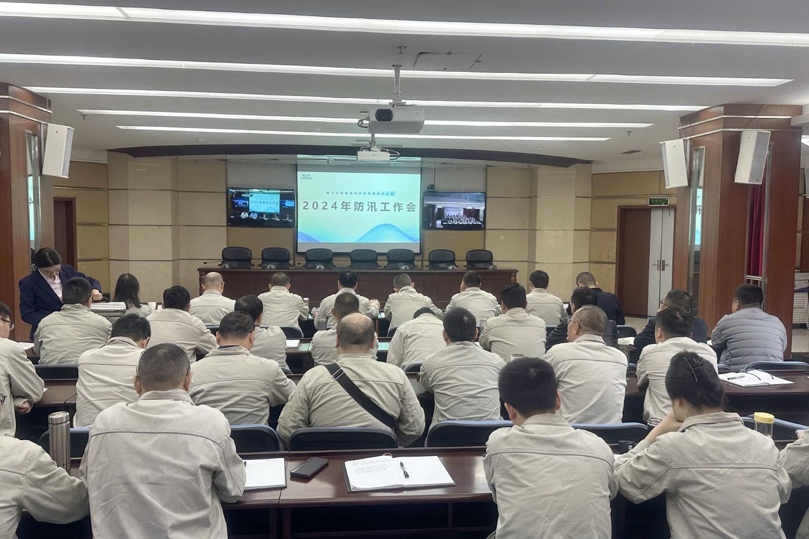 4月23日,田灣河公司在成都遠(yuǎn)控、電站現(xiàn)場同步召開2024年防汛工作會,田灣河公司黨委副書記、總經(jīng)理、安環(huán)職委會主任楊超龍參加會議并講話,公司領(lǐng)導(dǎo),各部門、子公司非生產(chǎn)值班全體員工參加會議。會議由副總經(jīng)理、安環(huán)職委會常務(wù)副主任伍超主持。
