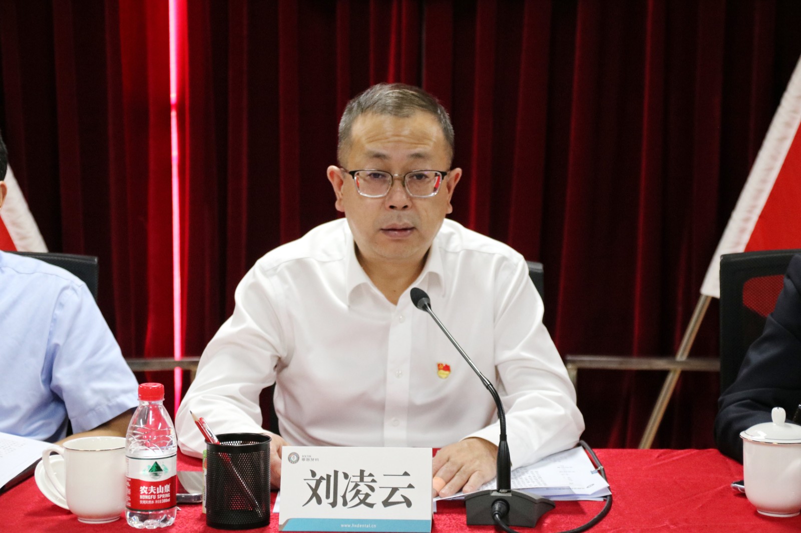 華西牙科領(lǐng)導(dǎo)班子成員出席會議,紀(jì)委委員,中層副職以上管理人員,所屬企業(yè)主要負(fù)責(zé)同志,黨員、群眾代表30余人參加會議。