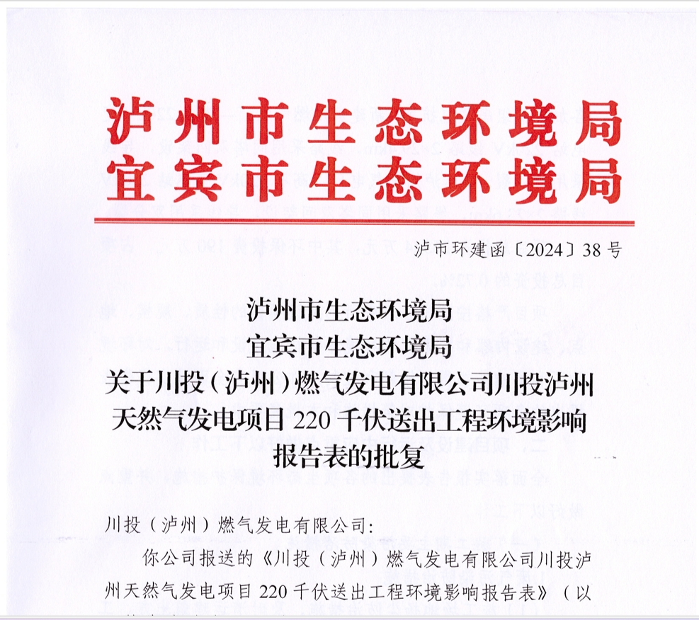4月30日,《川投瀘州天然氣發(fā)電項目220千伏送出工程環(huán)境影響報告表》順利通過瀘州市生態(tài)環(huán)境局和宜賓市生態(tài)環(huán)境局聯合審批,同意該工程按照環(huán)評報告書中所列環(huán)境保護污染防治措施及相關要求進行建設運行。至此,川投瀘州天然氣發(fā)電項目220千伏送出工程成功取得環(huán)評批復。