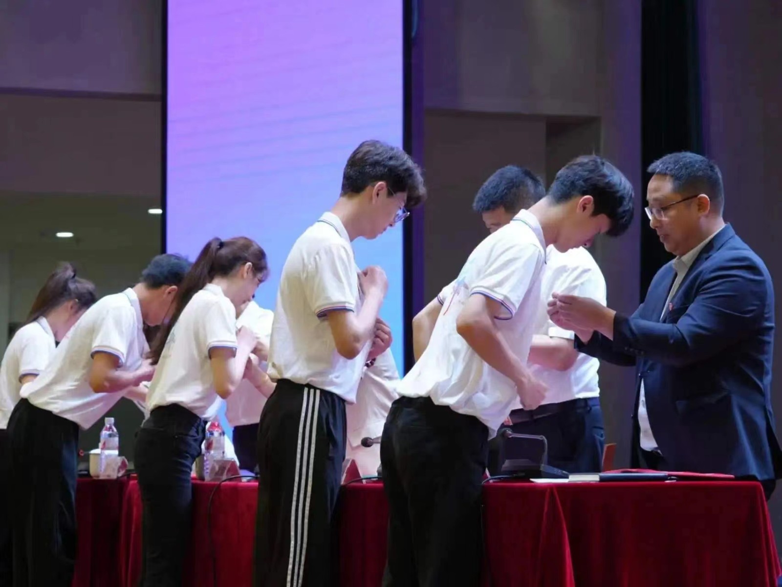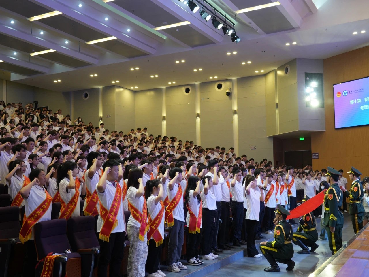 入團(tuán)儀式上,學(xué)生工作部部長(zhǎng)許宏君宣讀《2024年上半年新團(tuán)員入團(tuán)名單》,與會(huì)領(lǐng)導(dǎo)為新團(tuán)員佩戴團(tuán)徽、頒發(fā)團(tuán)員證。全體新老團(tuán)員莊嚴(yán)宣誓。