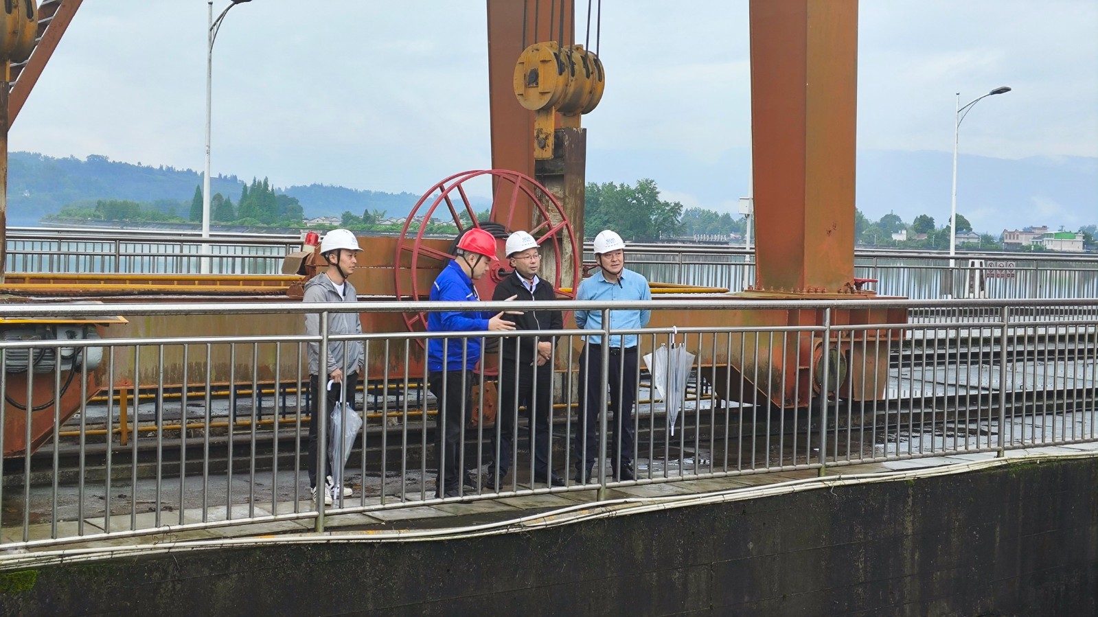楊傳華一行實地察看電廠前池庫區(qū)、大壩、泄洪沖沙閘等工程,對防汛工作落實情況、應(yīng)急預(yù)案修訂、監(jiān)測預(yù)警與聯(lián)動、應(yīng)急物資儲備工作情況進(jìn)行檢查,并現(xiàn)場聽取電廠防汛抗旱責(zé)任落實、水庫調(diào)度管理、極端天氣防范應(yīng)對措施等工作情況的匯報。