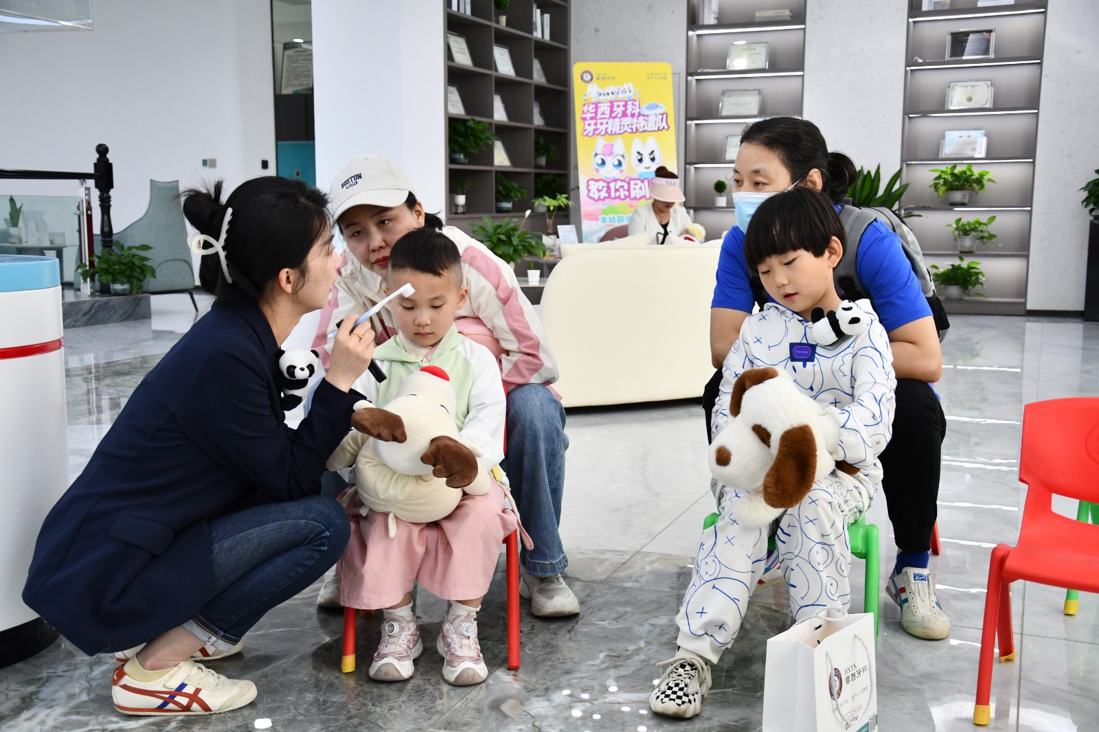 5月18日至19日,蘭州華西牙科醫(yī)院分批次邀請60余位小朋友到院參加“精靈特遣隊(duì)活動(dòng)”。活動(dòng)中,醫(yī)生以生動(dòng)易懂的形式向小朋友宣教愛牙護(hù)牙相關(guān)知識,并為每一位小朋友進(jìn)行口腔檢查。隨后,每一位小朋友化身為小小牙醫(yī),為自己的父母進(jìn)行口腔“檢查”。