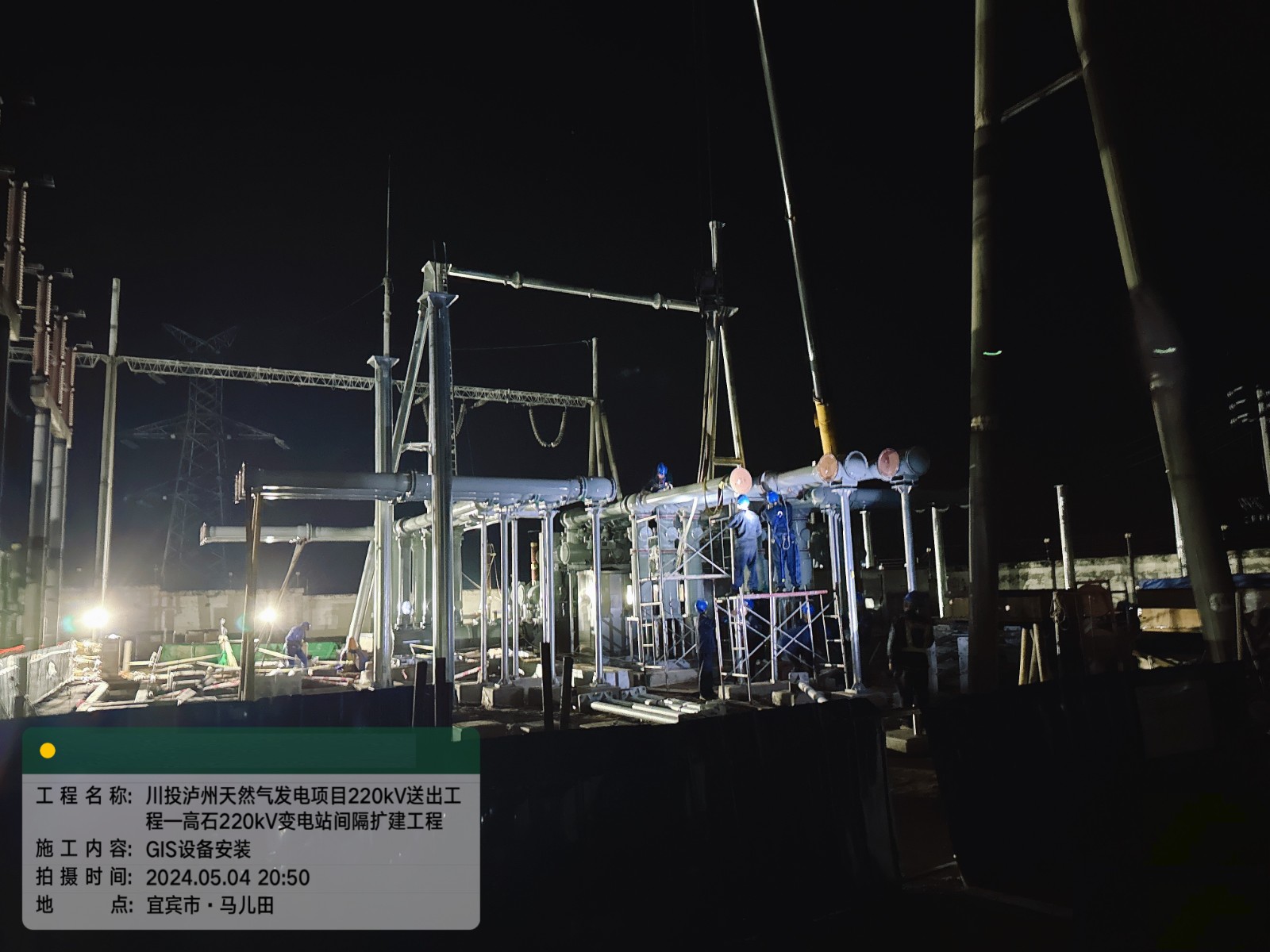高石變電站220千伏間隔擴(kuò)建工程是川投瀘州天然氣發(fā)電項(xiàng)目220千伏送出工程的一個(gè)重要單項(xiàng)工程,工程主要是將高石變電站的2個(gè)AIS間隔改造為4個(gè)GIS間隔。高石變電站為運(yùn)行站,為全力減小作業(yè)停電對(duì)宜賓電網(wǎng)供電安全造成影響,瀘州氣電堅(jiān)持安全第一,科學(xué)統(tǒng)籌、精心組織,接連克服運(yùn)行站施工協(xié)調(diào)面廣、拆裝設(shè)備吊裝頻繁、雨季作業(yè)難度大等諸多困難,見(jiàn)縫插針、挑燈夜戰(zhàn),提前半個(gè)月完成了高石變電站220千伏間隔擴(kuò)建工程施工。