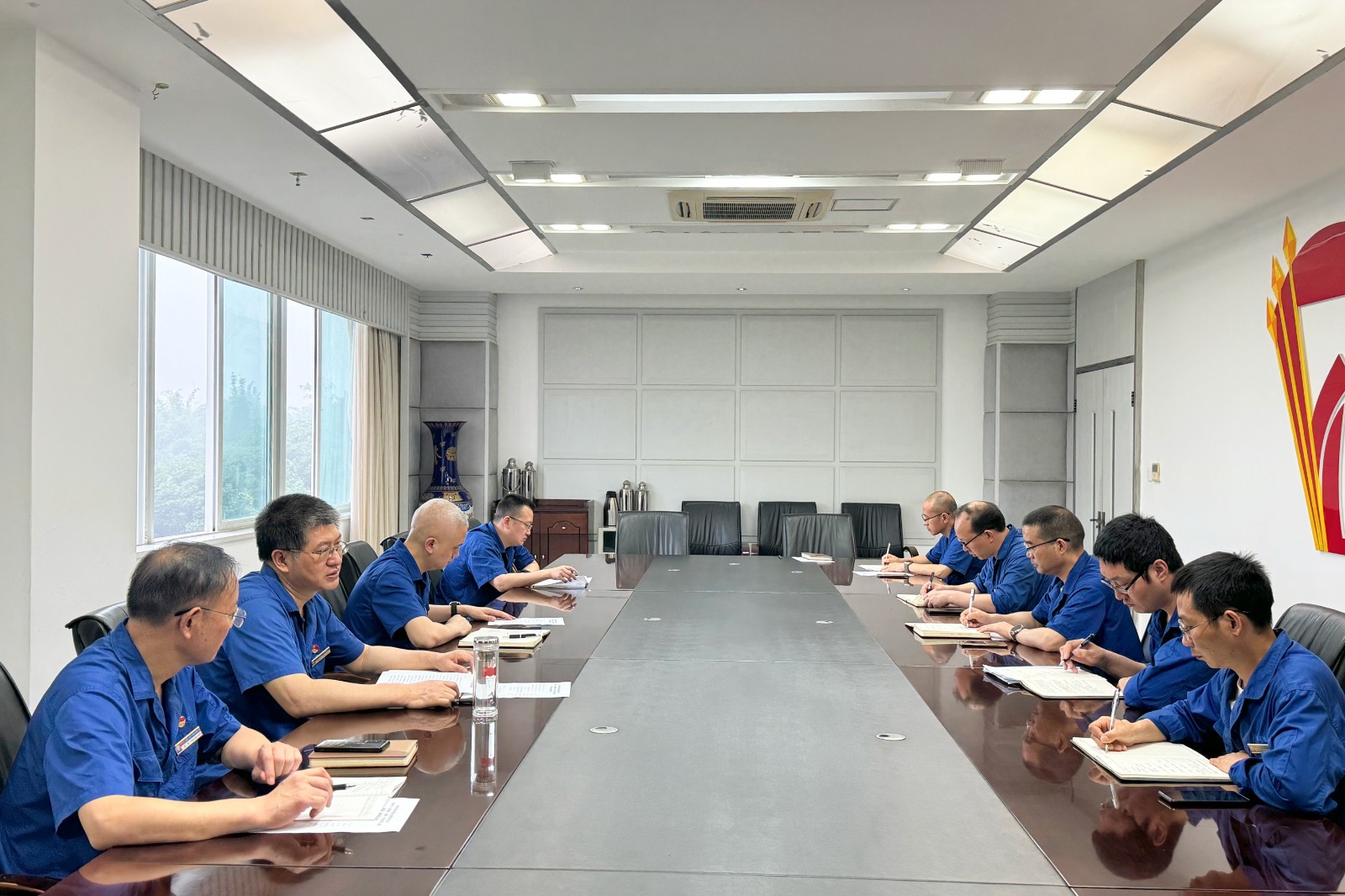 5月29日,公司集中開(kāi)展2024年新提拔中層管理人員任職談話(huà)和廉潔談話(huà)。談話(huà)由公司黨委書(shū)記、董事長(zhǎng)劉勝金主持,黨委副書(shū)記、總經(jīng)理陳嵩,黨委副書(shū)記、工會(huì)主席黃松,黨委委員、紀(jì)委書(shū)記鄧邦偉出席。