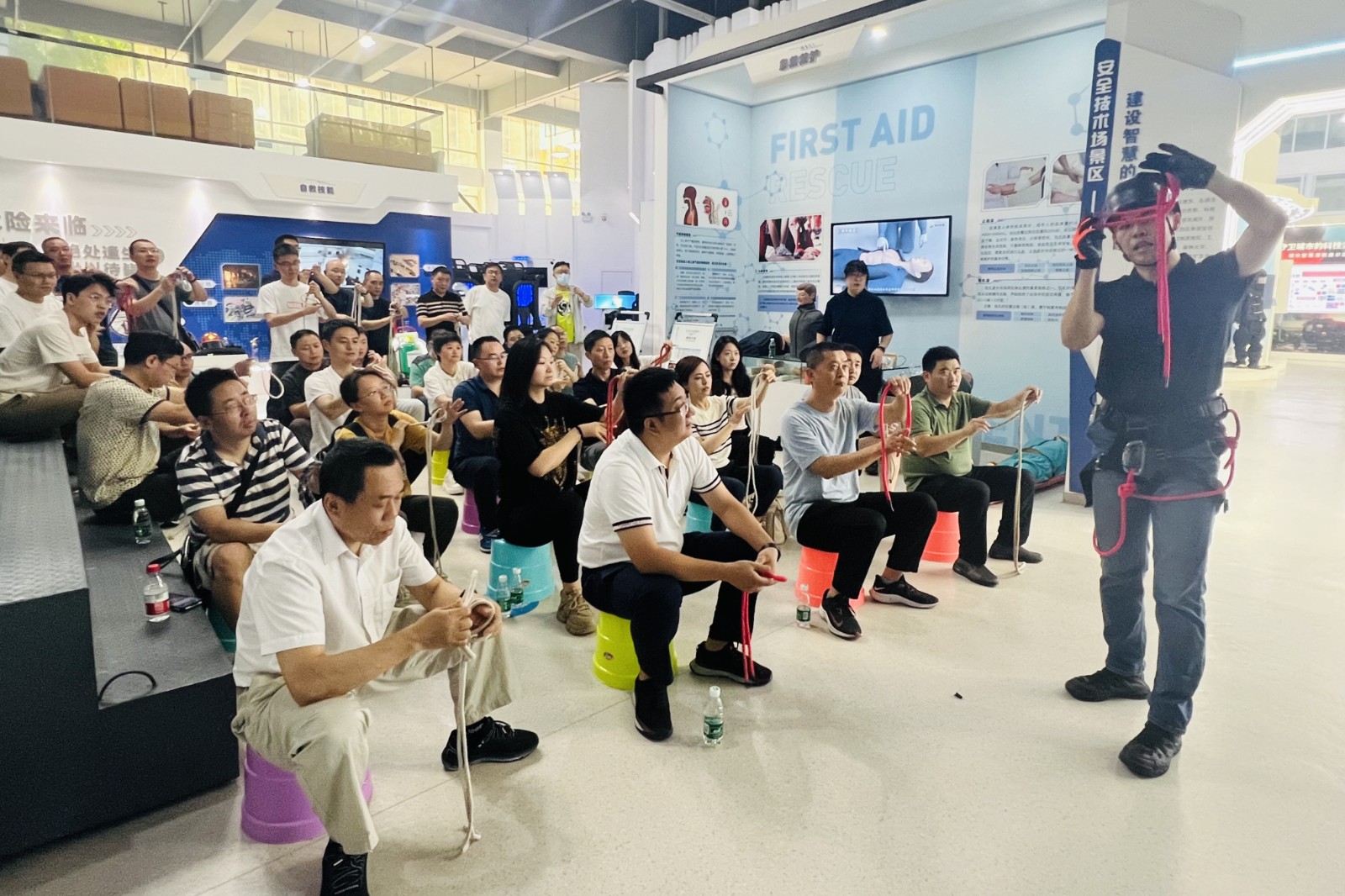 此次培訓(xùn)邀請了原中國國際救援隊退役隊員、紅十字國際學(xué)院培訓(xùn)講師等組成的專業(yè)團隊,采用“分班精講+實戰(zhàn)操作”的雙軌教學(xué)模式進行現(xiàn)場教學(xué)。課程圍繞2024年“安全生產(chǎn)月”活動主題“人人講安全、個個會應(yīng)急—暢通生命通道”,結(jié)合公司實際,內(nèi)容涵蓋地震地質(zhì)災(zāi)害防范、消防安全、醫(yī)療急救、火災(zāi)及高空逃生等急救自救知識,通過VR環(huán)境模擬體驗、實景演練等方式,邊講邊學(xué)、邊練邊學(xué),全面且詳細地解析了突發(fā)情況下應(yīng)急處理的各項要領(lǐng)。