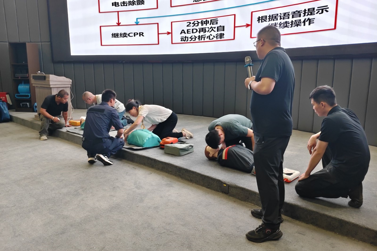 此次培訓(xùn)圍繞“人人講安全、個(gè)個(gè)會(huì)應(yīng)急——暢通生命通道”主題,結(jié)合公司實(shí)際,重點(diǎn)就地震避險(xiǎn)、火災(zāi)逃生、高空逃生、院前急救等技能知識進(jìn)行講解。高空逃生課上,老師一步步演示逃生繩結(jié)系法,學(xué)員們認(rèn)真聽仔細(xì)看,手上也不停跟隨演示練習(xí);火災(zāi)煙道逃生課上,同學(xué)們聽從老師指揮有序進(jìn)入煙霧逃脫體驗(yàn)棚,身臨其境感受“火海逃生”;院前急救課上,大家踴躍舉手,積極參與心肺復(fù)蘇實(shí)操,老師在旁一對一悉心指導(dǎo)AED使用方法……培訓(xùn)現(xiàn)場大家積極參與演練,認(rèn)真開展討論,營造出一片全員學(xué)安全的濃厚氛圍。大家紛紛表示,此次培訓(xùn)內(nèi)容豐富且實(shí)操性強(qiáng),“干貨滿滿、收獲滿滿”;“理論學(xué)習(xí)+實(shí)操演練”相結(jié)合的方式,也促進(jìn)了知識技能的鞏固加深,讓安全更加入腦入心。