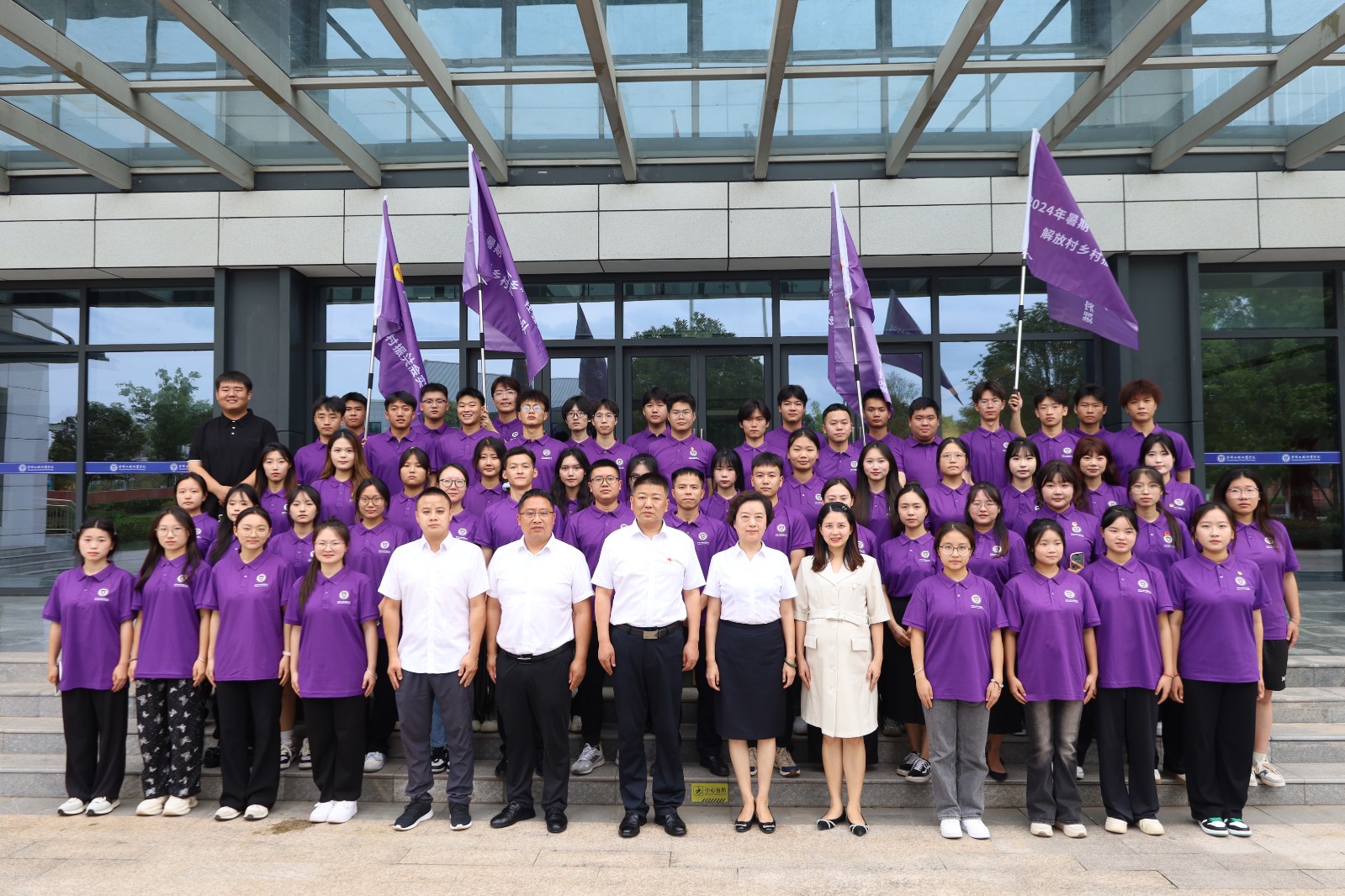 張中偉為各社會實踐服務(wù)隊授旗并宣布出征。